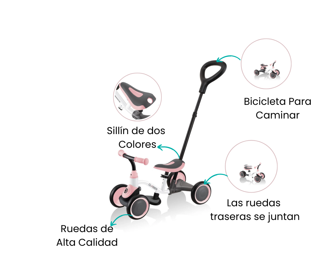 La bicicleta de aprendizaje con 4 ruedas es ideal para mejorar las habilidades motoras de tu pequeño en las primeras etapas de su desarrollo, promoviendo una infancia activa y llena de diversión. Con su mando de control para adultos, esta bicicleta 3 en 1 ofrece tres modos de conducción distintos: control total por parte del adulto, autonomía con estabilidad adicional gracias a las ruedas traseras separadas, y un modo intermedio con las ruedas traseras juntas para mayor equilibrio.