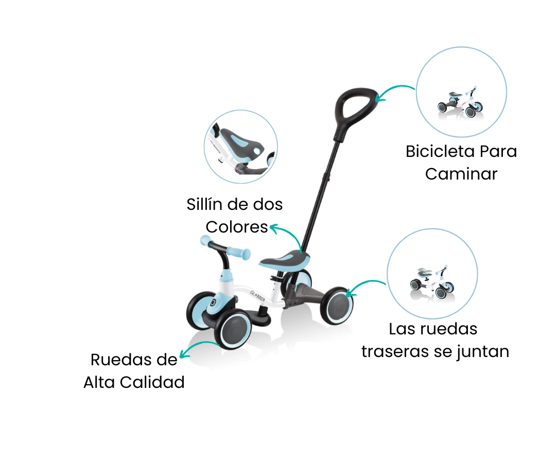 La bicicleta de aprendizaje con 4 ruedas es ideal para mejorar las habilidades motoras de tu pequeño en las primeras etapas de su desarrollo, promoviendo una infancia activa y llena de diversión.