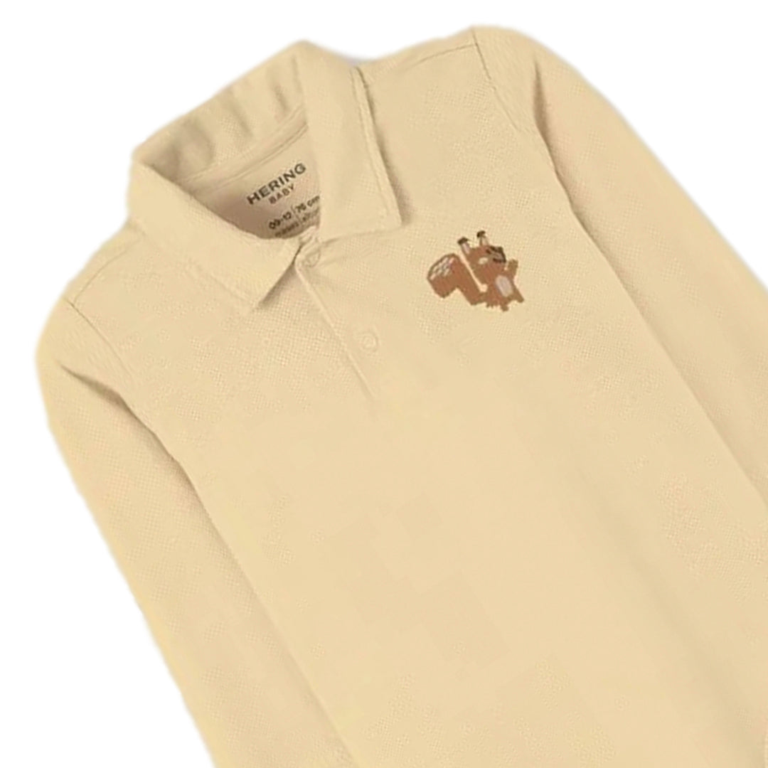 Body de corte regular y manga larga. Imprescindible para el bebé, con cuello polo, abertura delantera con botones de ojal. Desarrollado en punto piqué con detalle especial bordado en el pecho izquierdo del usuario.