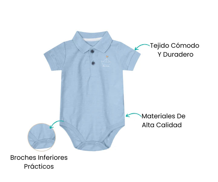 Este Body Polo para bebé de Brandili es la prenda perfecta para combinar estilo y practicidad. Confeccionado en materiales suaves y transpirables, garantiza el máximo confort para la delicada piel de tu bebé. Su diseño de cuello polo le da un toque elegante, ideal para cualquier ocasión, desde un paseo hasta una reunión familiar