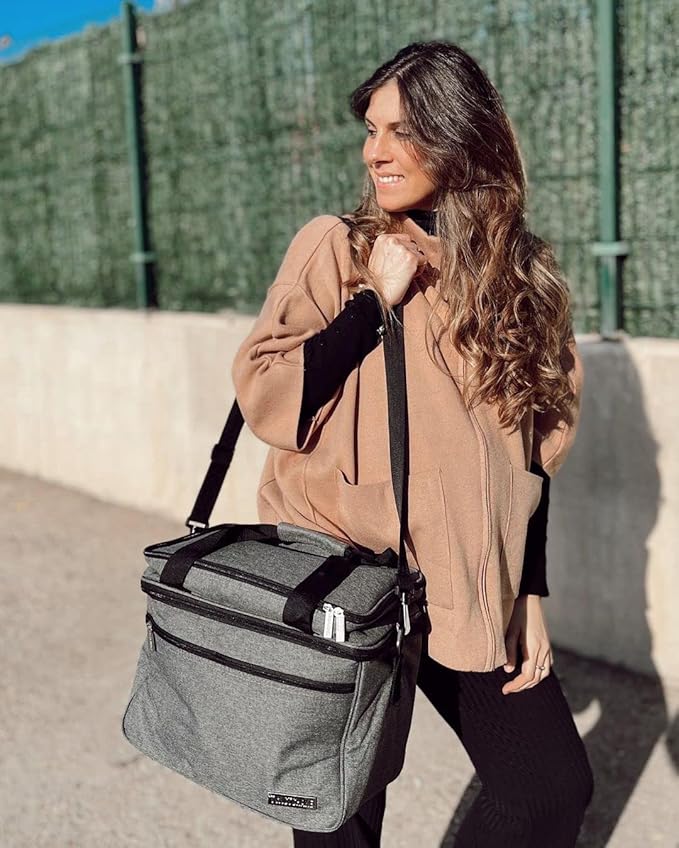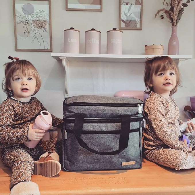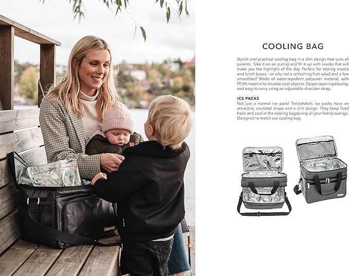 Guarda lo que necesites para ir de excursión en este elegante y resistente bolso nevera en negro y gris. Llévala al parque, a la playa o al barco: es perfecta para cualquier actividad. El compartimiento refrigerador grande de esta bolsa nevera tiene capacidad para 15 litros y además dispone de almacenamiento en la tapa superior, así como de otros compartimentos. La tapa superior enfría eficazmente tus accesorios, pero también es perfecta para guardar tazas, cubiertos, bolsitas reutilizables para alimentos y manteles Click-mat mini de Twistshake.