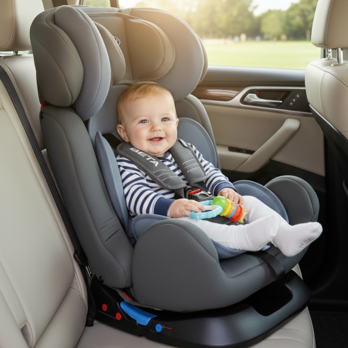 El asiento de auto Beta Grey está diseñado para acompañar a tu pequeño desde el nacimiento hasta los primeros años, brindando comodidad y protección en cada trayecto. Su estructura ergonómica y acolchada garantiza una posición segura y confortable, mientras su diseño moderno se adapta perfectamente al interior del vehículo.