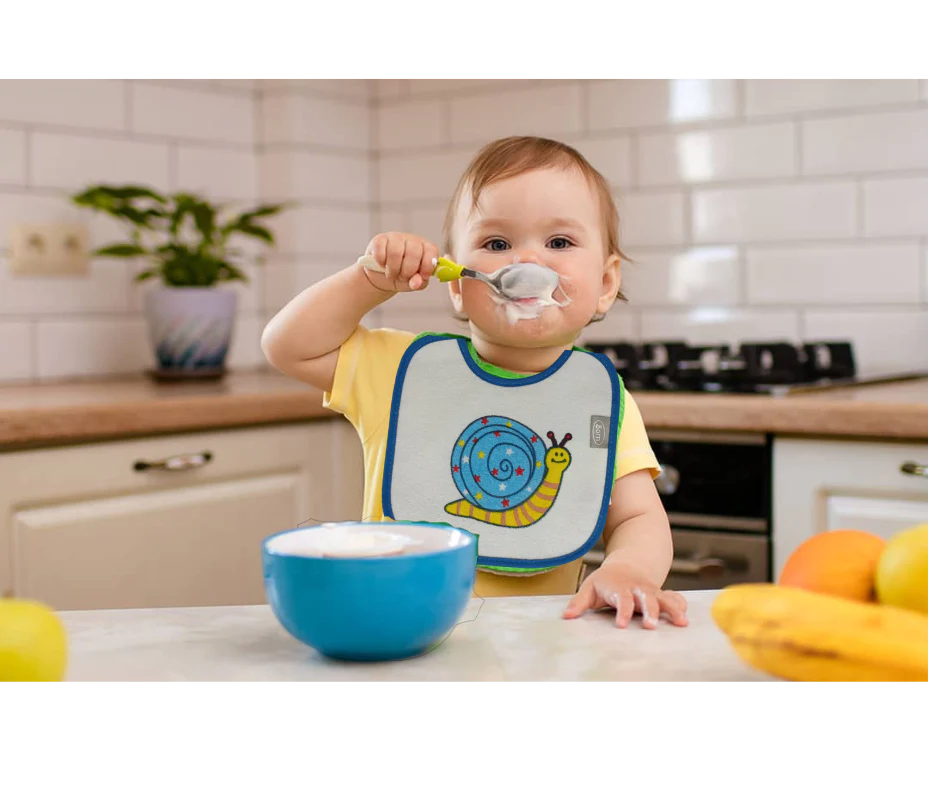 Con el babero Born con refuerzo de vinilo, mantener a tu bebé impecable durante las comidas será más fácil que nunca. Este babero está diseñado especialmente para hacer de la hora de comer una experiencia cómoda, divertida y libre de preocupaciones.
