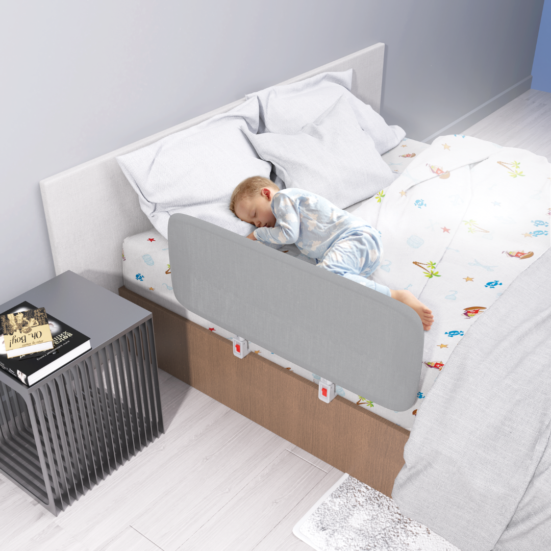 El borde elevado de la baranda crea una barrera sólida y estable, que proporciona una sensación de seguridad y protección para niños pequeños. Esta característica es especialmente útil para tu bebé que puede tener problemas de equilibrio durante el sueño.