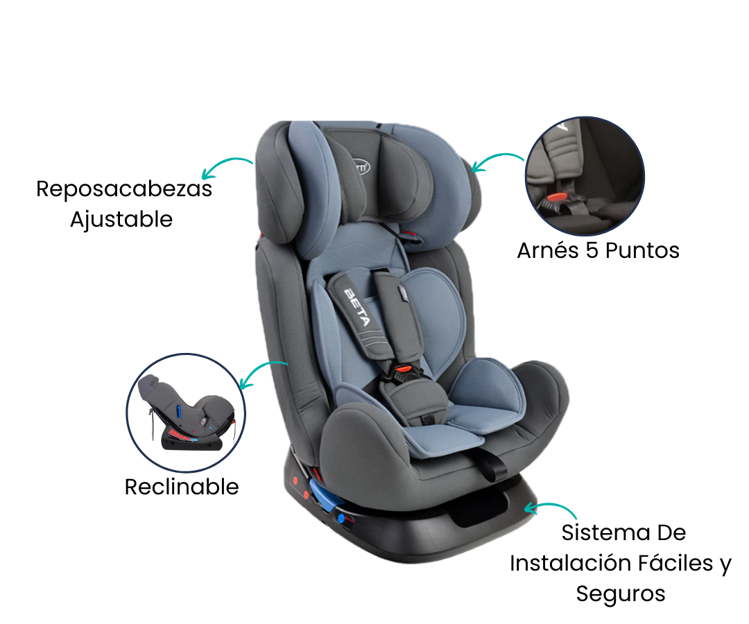 El asiento de auto Beta Grey está diseñado para acompañar a tu pequeño desde el nacimiento hasta los primeros años, brindando comodidad y protección en cada trayecto. Su estructura ergonómica y acolchada garantiza una posición segura y confortable, mientras su diseño moderno se adapta perfectamente al interior del vehículo.