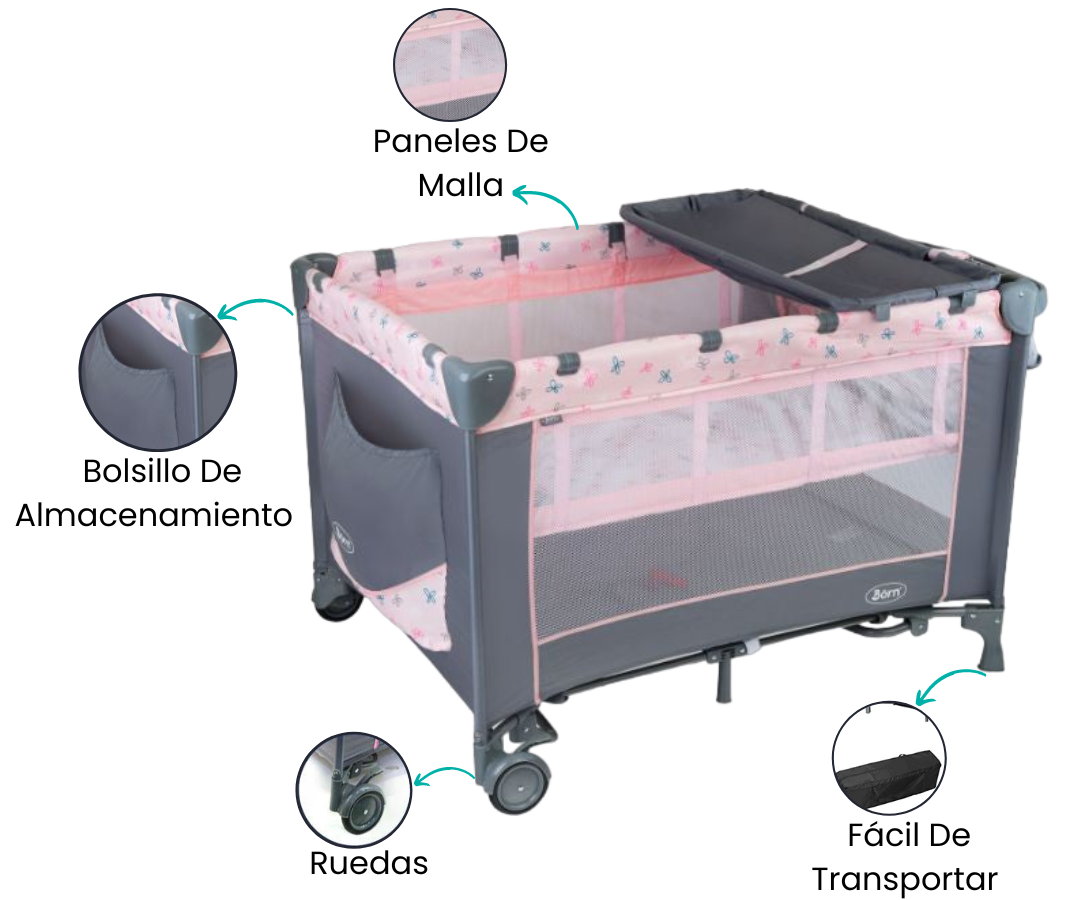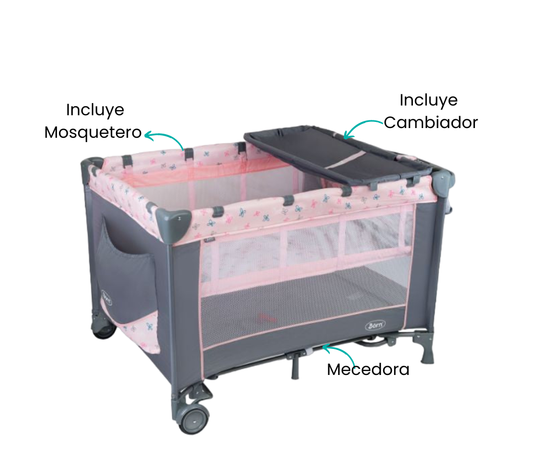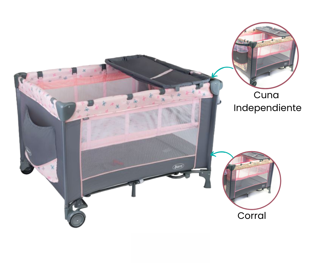La cuna Born se adapta al crecimiento de tu bebé con su diseño versátil. Además, el corral portátil es una combinación perfecta de funcionalidad y practicidad, fácil de armar y desarmar. Ya sea para viajes, visitas familiares o como un espacio seguro en casa, el corral Born crea un ambiente acogedor donde tu bebé puede jugar y descansar sin preocupaciones.