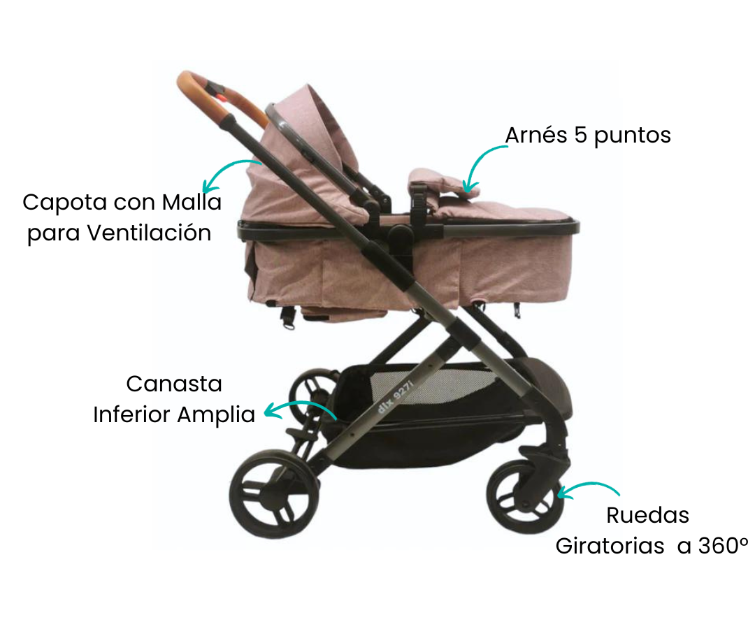 Descubre la versatilidad incomparable del Coche DLX 927I ROSE MELANGE, diseñado para brindar a tu bebé la máxima comodidad y seguridad durante sus primeros años de vida. Este excepcional coche se adapta a las distintas etapas del crecimiento de tu pequeño, convirtiéndose en el compañero ideal para cada fase.