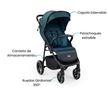 La mejor opción para salir con tu bebé a dar un paseo, coche liviano con capota UV 50+, ruedas 360°