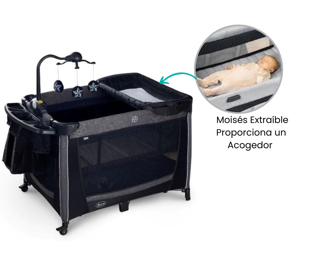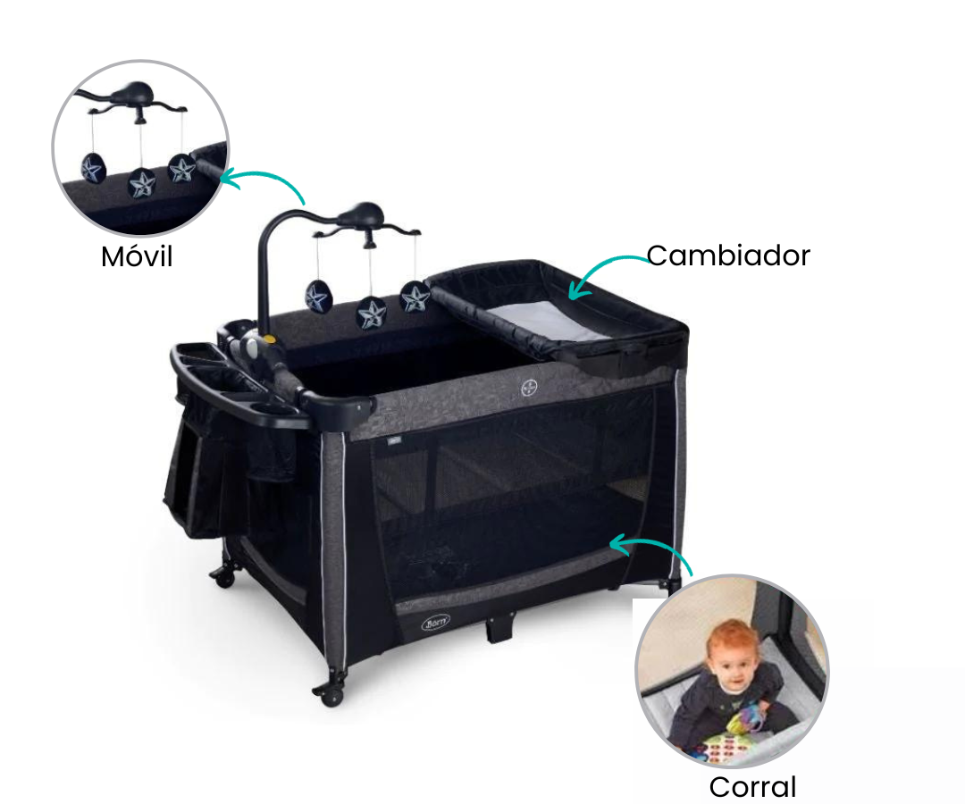 Descubre la excelencia en el descanso y la practicidad con el innovador Corral Jade Black. Diseñado para ofrecer a tu bebé un refugio acogedor tanto en casa como durante tus viajes, este corral es la solución perfecta para padres que buscan comodidad sin comprometer el estilo.