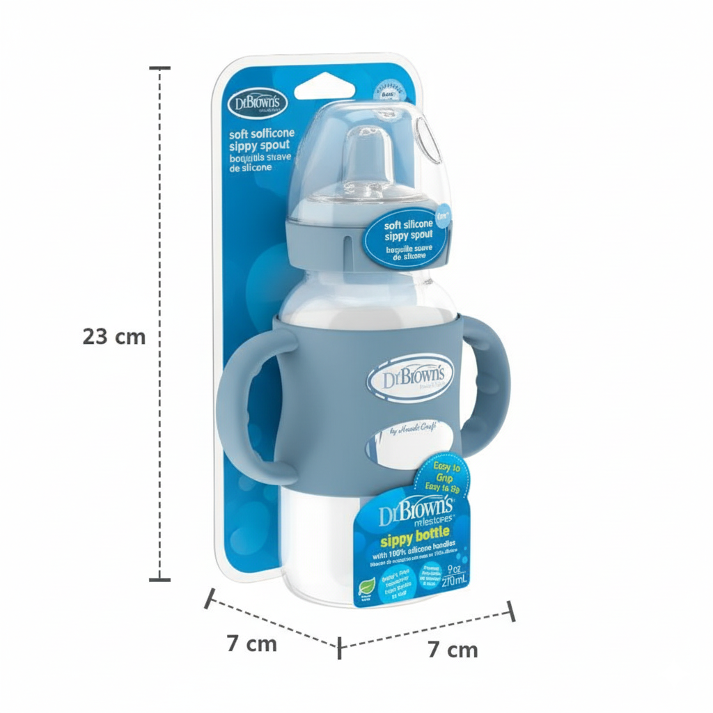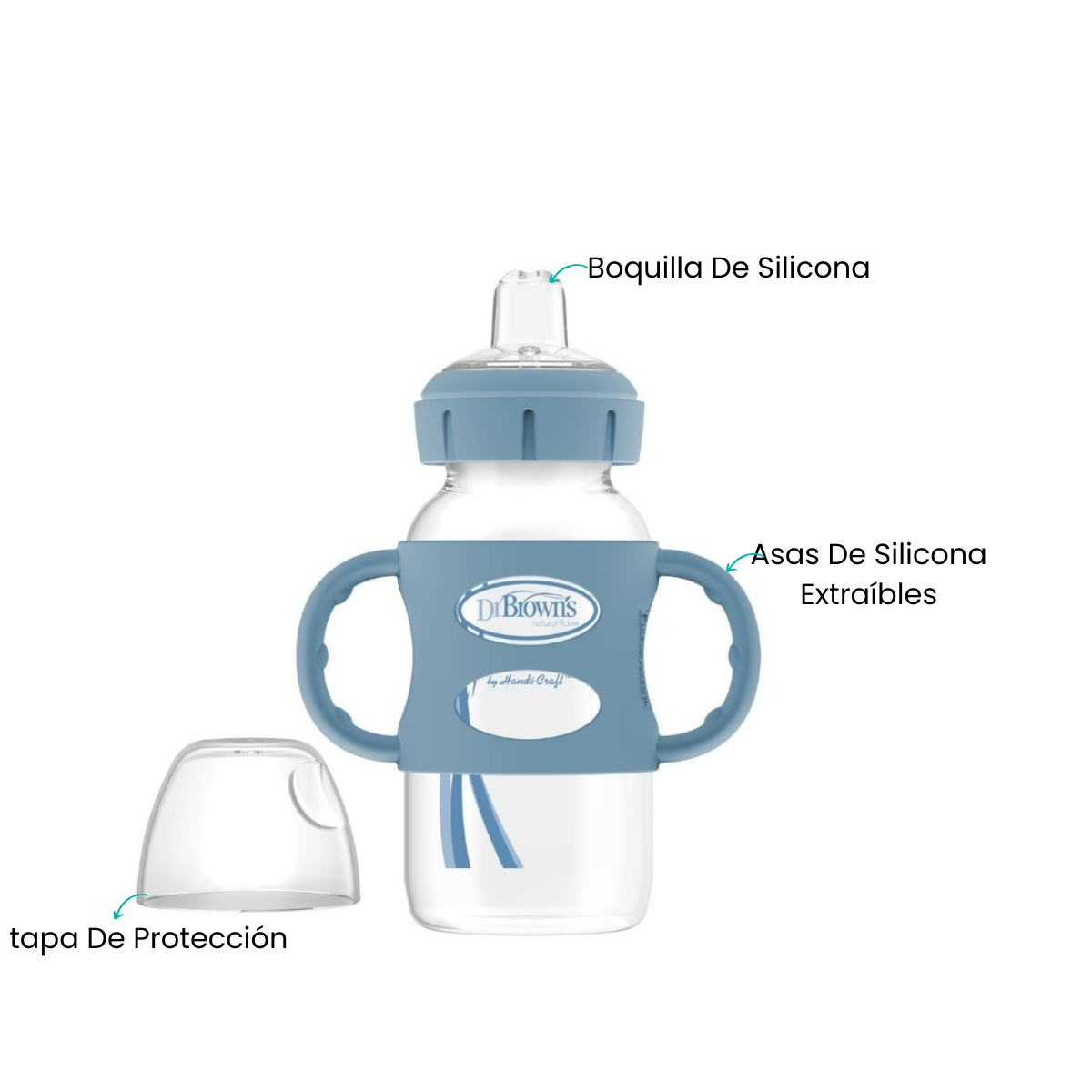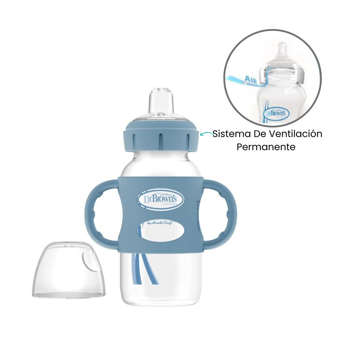 Fomenta la independencia de tu bebé con el Biberón de Transición con Asas Dr. Brown’s, creado para facilitar el paso hacia la alimentación autónoma. Su diseño ergonómico permite un agarre cómodo y seguro, ideal para manos pequeñas. Las asas antideslizantes promueven la coordinación y el control, fortaleciendo el desarrollo motor de tu pequeño. Además, su boquilla suave hace que la transición sea natural y sin esfuerzo. Perfecto para apoyar a tu bebé en su camino hacia beber solito.
