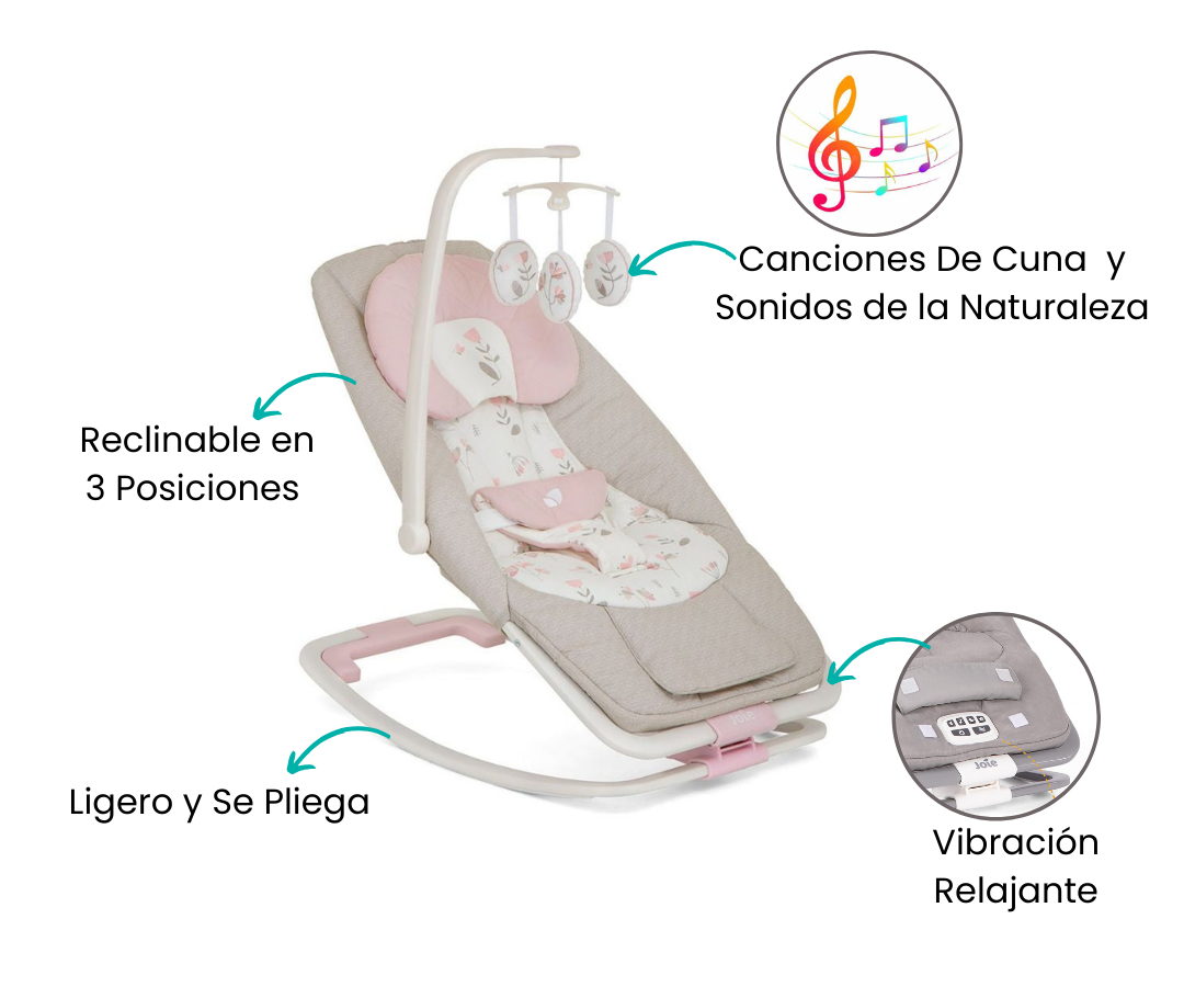 Desde recién nacido, este bouncer brinda consuelo y relajación. Con un marco compacto y prácticos extras, es la solución perfecta tanto en casa como en movimiento. Esta indispensable mecedora no solo calma y entretiene a tu bebé, sino que también te da a ti, como padre, un merecido descanso para tus brazos. Una opción cómoda y reconfortante para ambos en cualquier momento del día.
