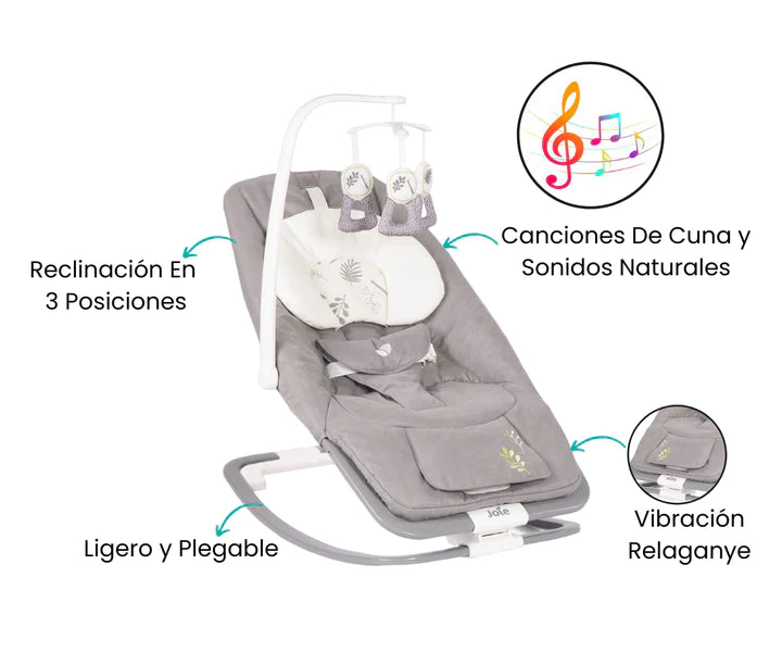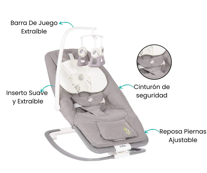 Desde recién nacido, este bouncer brinda consuelo y relajación. Con un marco compacto y prácticos extras, es la solución perfecta tanto en casa como en movimiento. Esta indispensable mecedora no solo calma y entretiene a tu bebé, sino que también te da a ti, como padre, un merecido descanso para tus brazos. Una opción cómoda y reconfortante para ambos en cualquier momento del día.