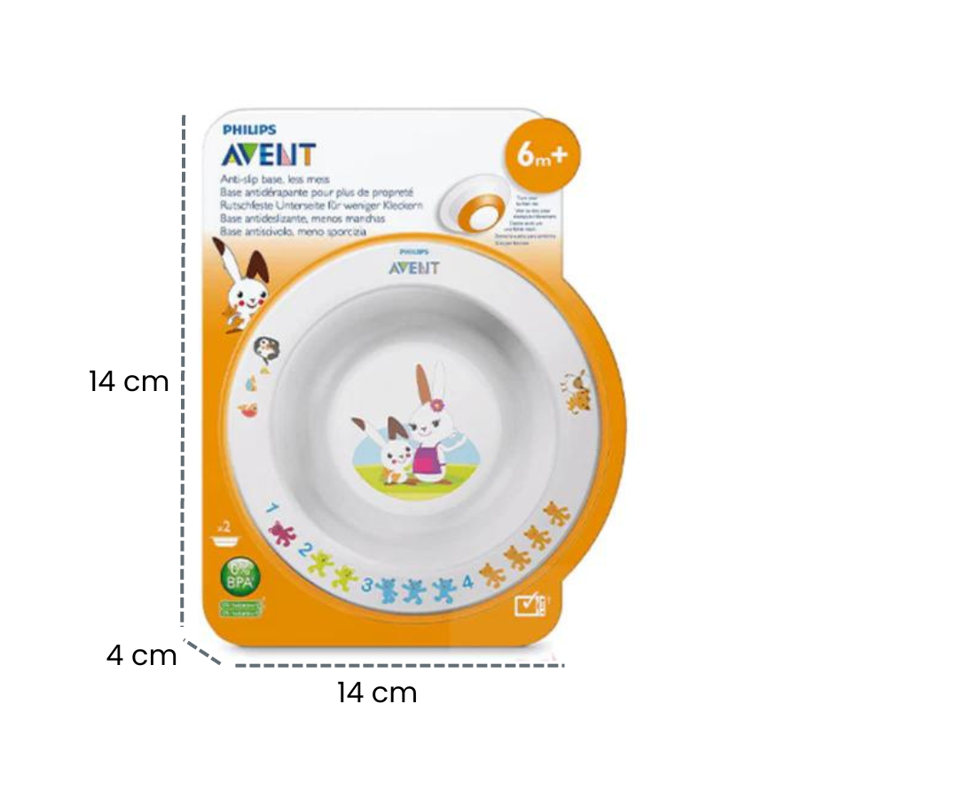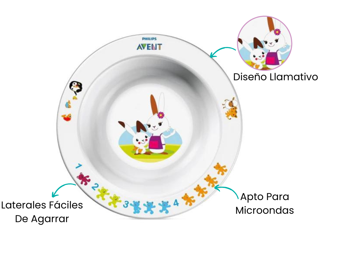 Los cuencos Avent son ideales para bebés a partir de 6 meses, perfectos para aprender a comer solos. Con bordes diseñados para facilitar el uso y una base antideslizante que evita derrames, son prácticos y seguros. Aptos para microondas y lavavajillas, son fáciles de limpiar. Decorados con dibujos divertidos, convierten las comidas en un momento educativo y entretenido.