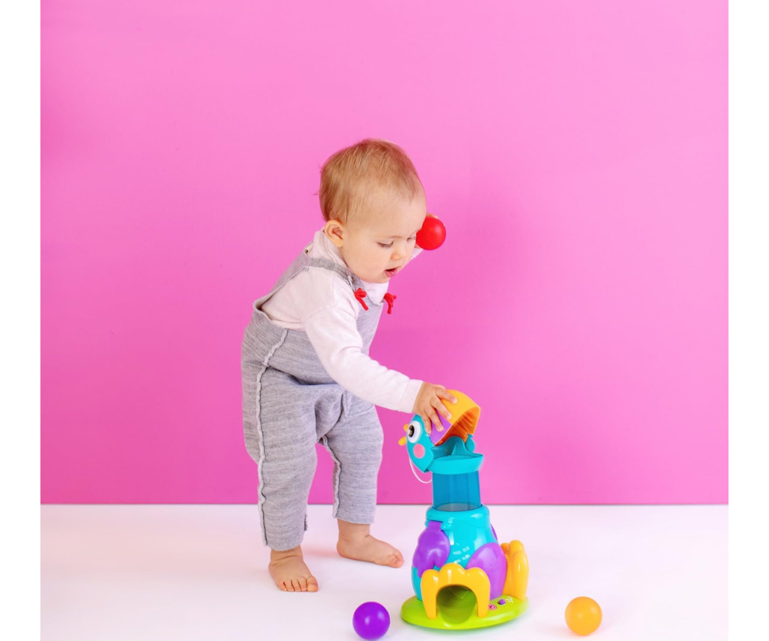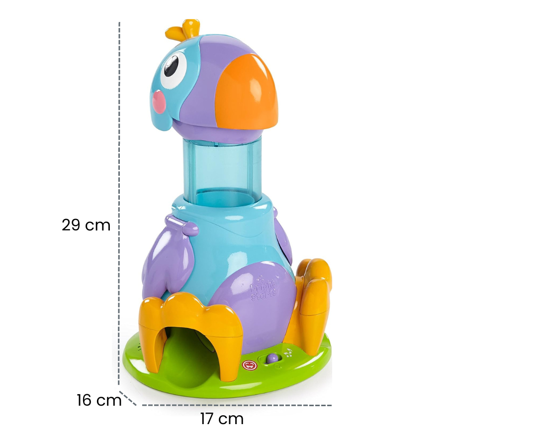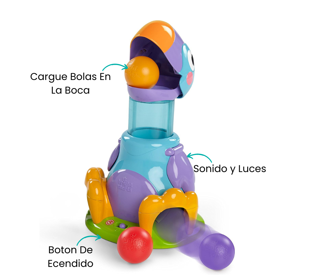 Deja que la diversión vuele con este travieso tucán presiona su cabeza y disfruta de sus sonidos tontos. Este juguete adorable no solo volteará y aleteará, sino que también te hará reír con sus ataques de risa incluso puedes unirte a la diversión con el juego de lanzar bolas.