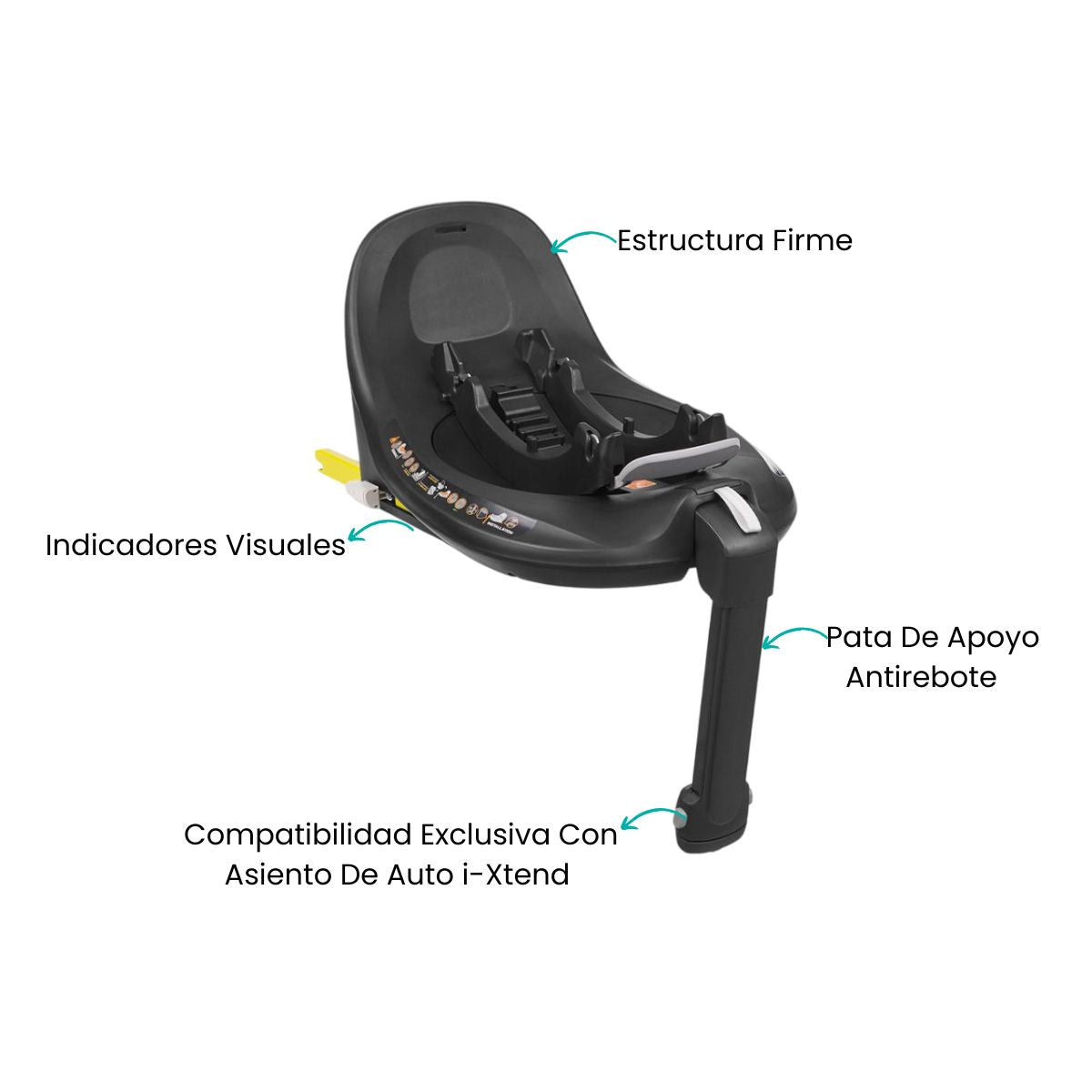 Esta base ISOFIX está diseñada para integrarse al asiento de auto i-Xtend, ofreciendo una fijación firme que elimina movimientos indeseados durante el trayecto. La posibilidad de rotarla 360° permite colocar al niño mirando hacia la puerta del auto, lo que facilita sujetarlo, colocarlo o sacarlo sin malabares, reduciendo el esfuerzo de espalda y mejorando la postura de los padres.