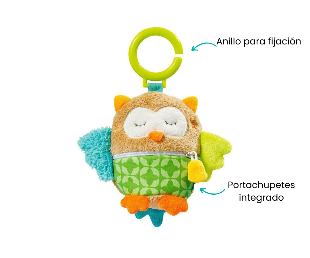 El búho es mucho más que un adorable peluche, es una solución práctica y versátil para los padres ocupados. Además de ser un compañero reconfortante para tu bebé, también funciona como un práctico portachupetes y correa para el hombro.
