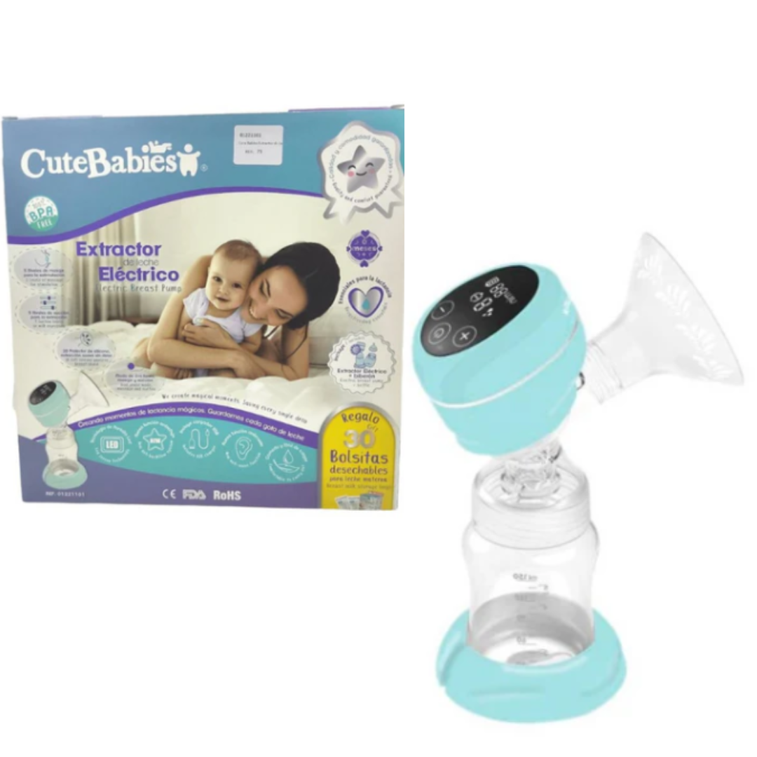 Extractor de leche eléctrico, 9 niveles de masaje para la estimulación, 9 niveles de succión para la extracción, protector de silicona para una extracción suave, modo de dos fases masaje y succión, pantalla táctil LED, cargador USB, incluye 30 bolsas desechables para recolectar leche.