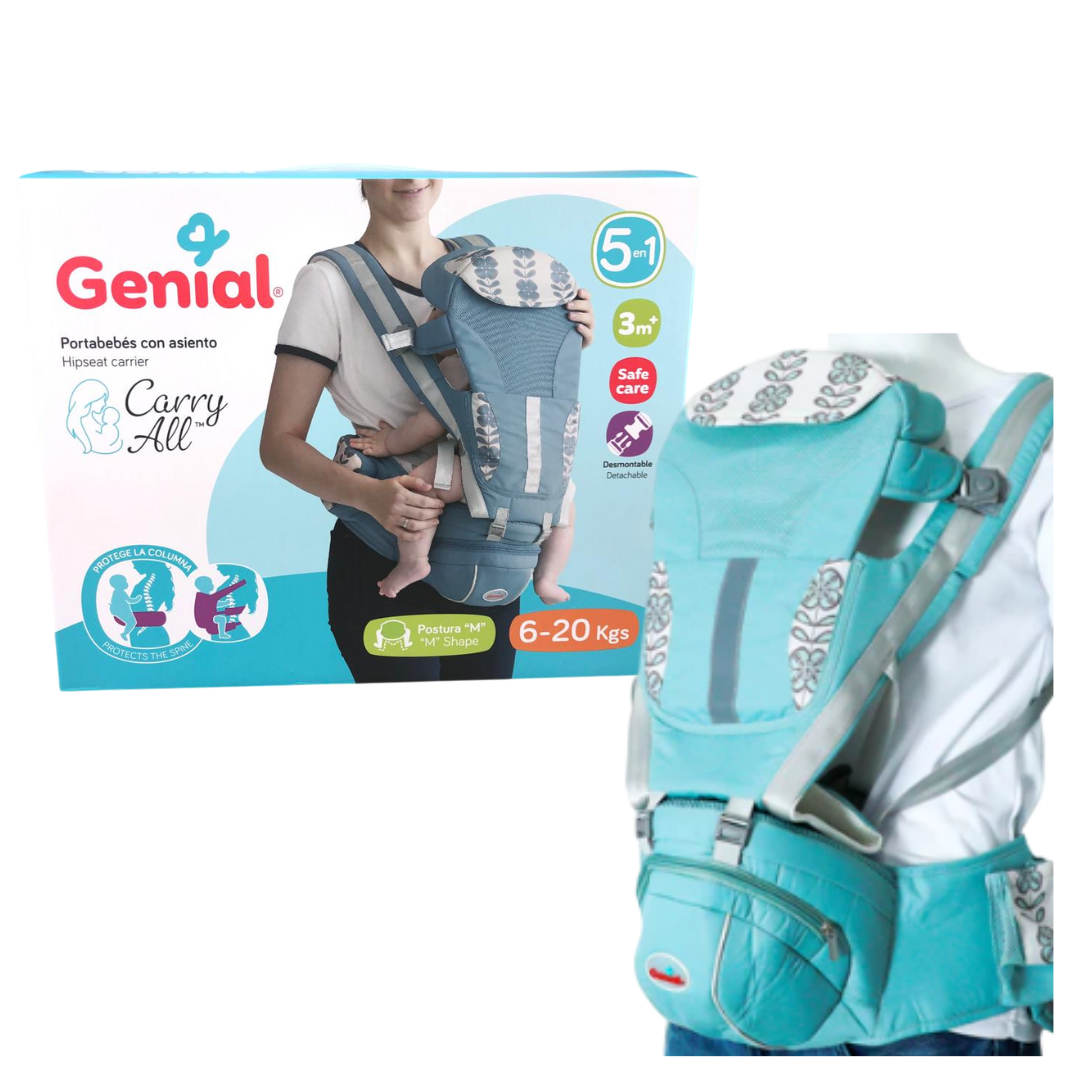 Canguro 5 en 1, transpirable cómodo y ultra ligero, con diseño ergonómico, correas ajustables para un ajuste perfecto, acolchado para máximo confort, postura en M, favorece el desarrollo saludable de la cadera del bebé. Uso adecuado desde los 3 meses, 6 - 20 kg.