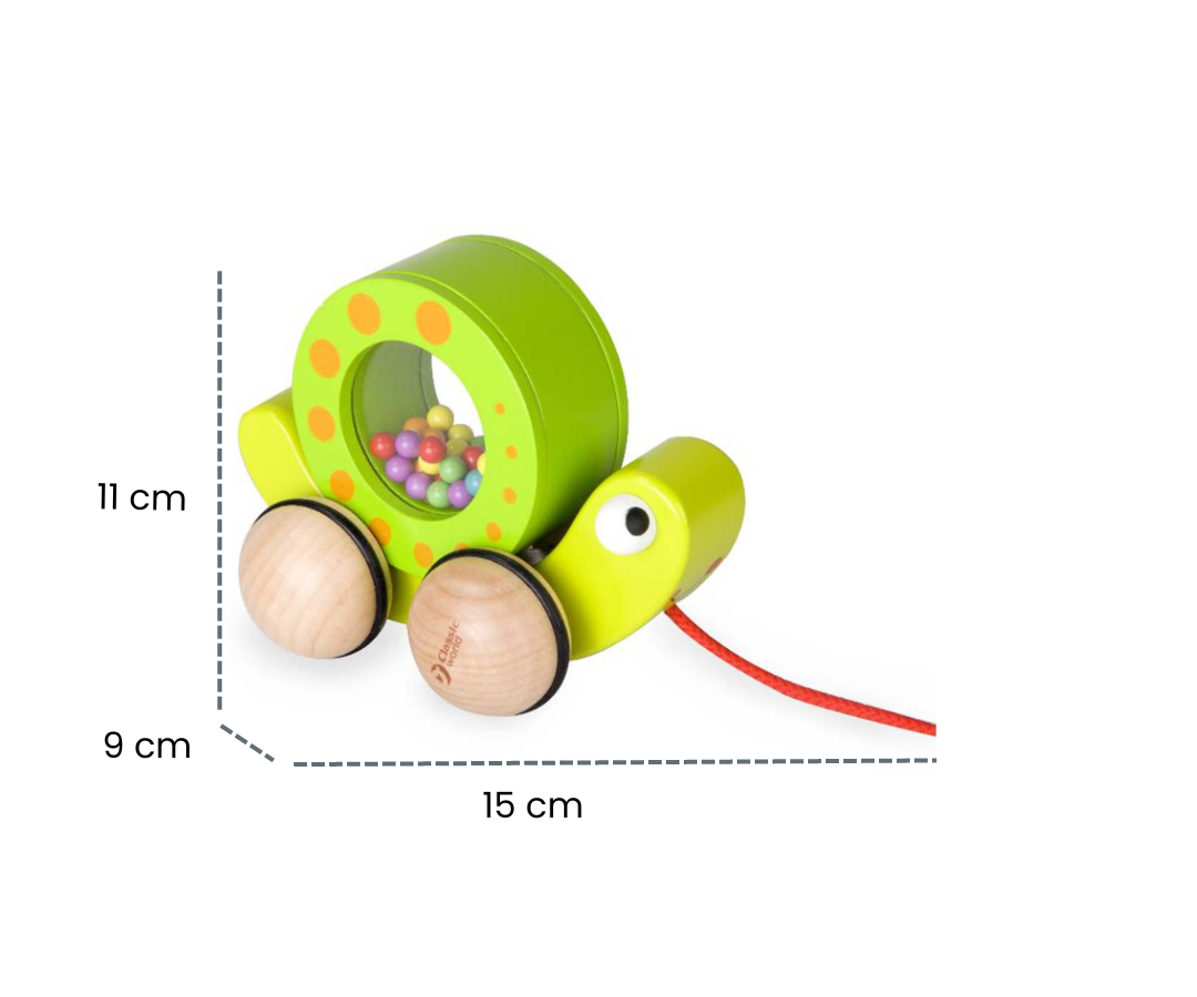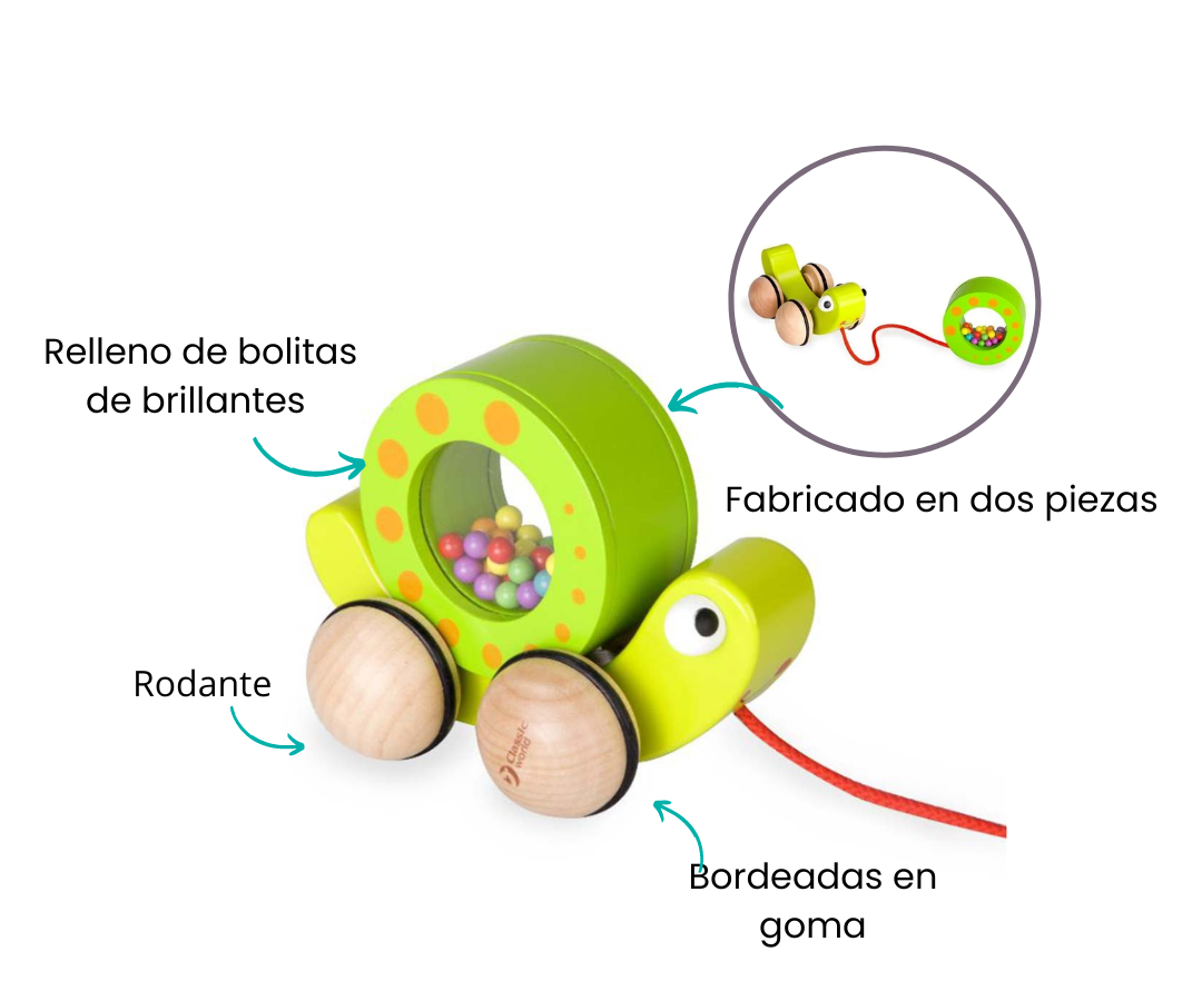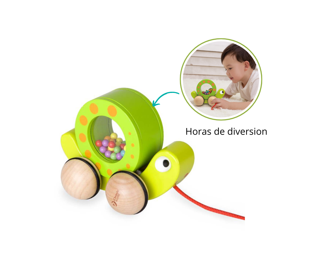 Este dulce caracol viene con un caparazón colorido que suena cuando su hijo lo arrastra. Es un juguete encantador que estimula el desarrollo sensorial y la coordinación motora de los más pequeños. Además de ser divertido, este caracol educativo fomenta el juego activo y la exploración. Con su diseño adorable y seguro, es perfecto para horas de entretenimiento y aprendizaje.