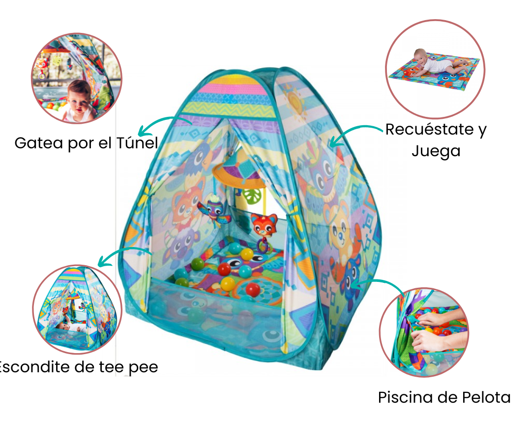 El bebé disfrutará de momentos llenos de risas y descubrimientos con el oso, el alce, el búho y sus amigos en este tipi escondido bellamente ilustrado. Con 6 formas de jugar, las oportunidades de diversión son infinitas. Este espacio de juego versátil ofrece un lugar acogedor para la imaginación y la exploración, asegurando horas de alegría y entretenimiento para tu pequeño aventurero.
