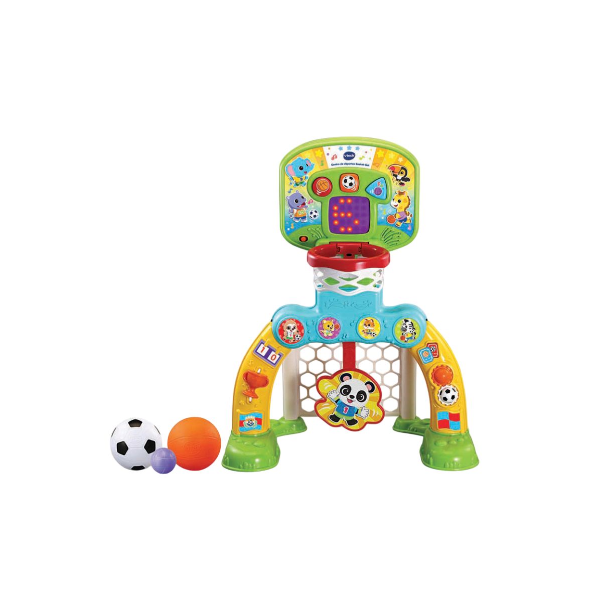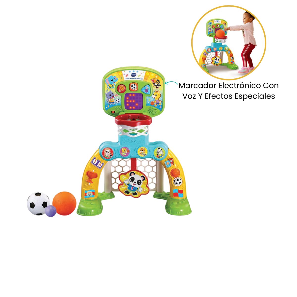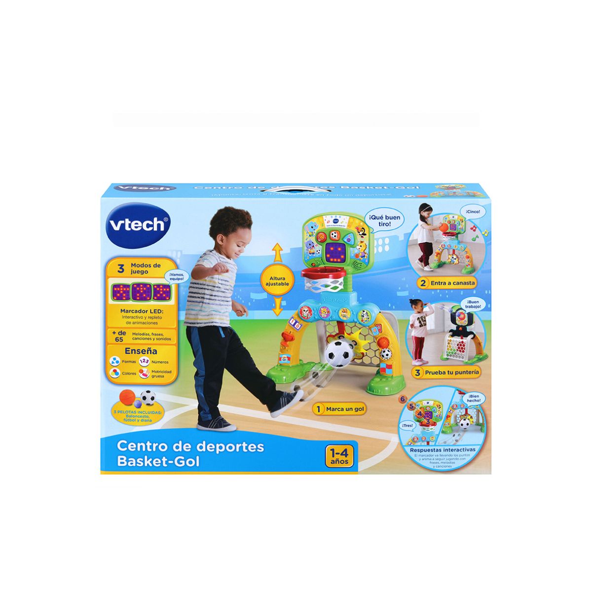 El centro de deportes Básket-Gol de VTech es el compañero perfecto para despertar la pasión por el deporte desde los primeros años. Con su diseño interactivo 3 en 1, los pequeños disfrutarán de horas de juego activo mientras desarrollan su motricidad fina y gruesa. Cada gol y canasta se convierten en una oportunidad para aprender, compartir y celebrar, fomentando valores como el compañerismo, la superación y la deportividad.