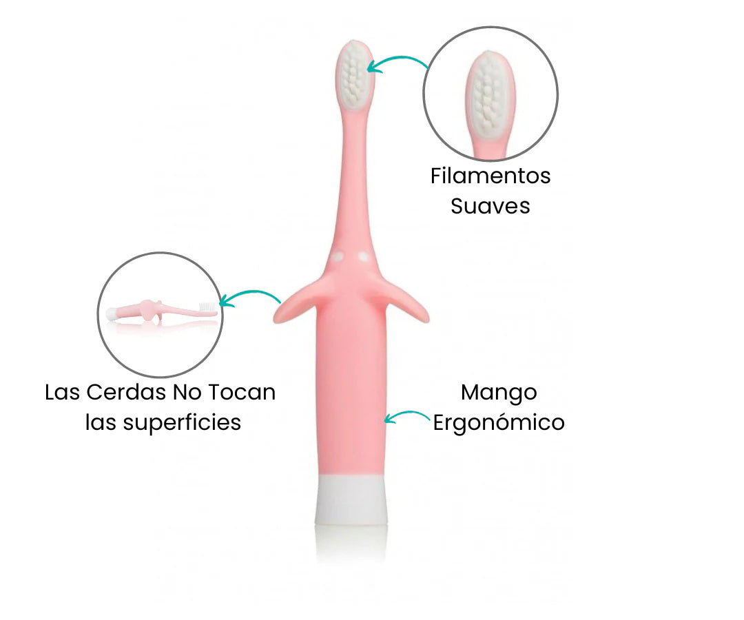 • Sus filamentos limpian suavemente y en profundidad, manteniendo la salud de su boca desde que nace.