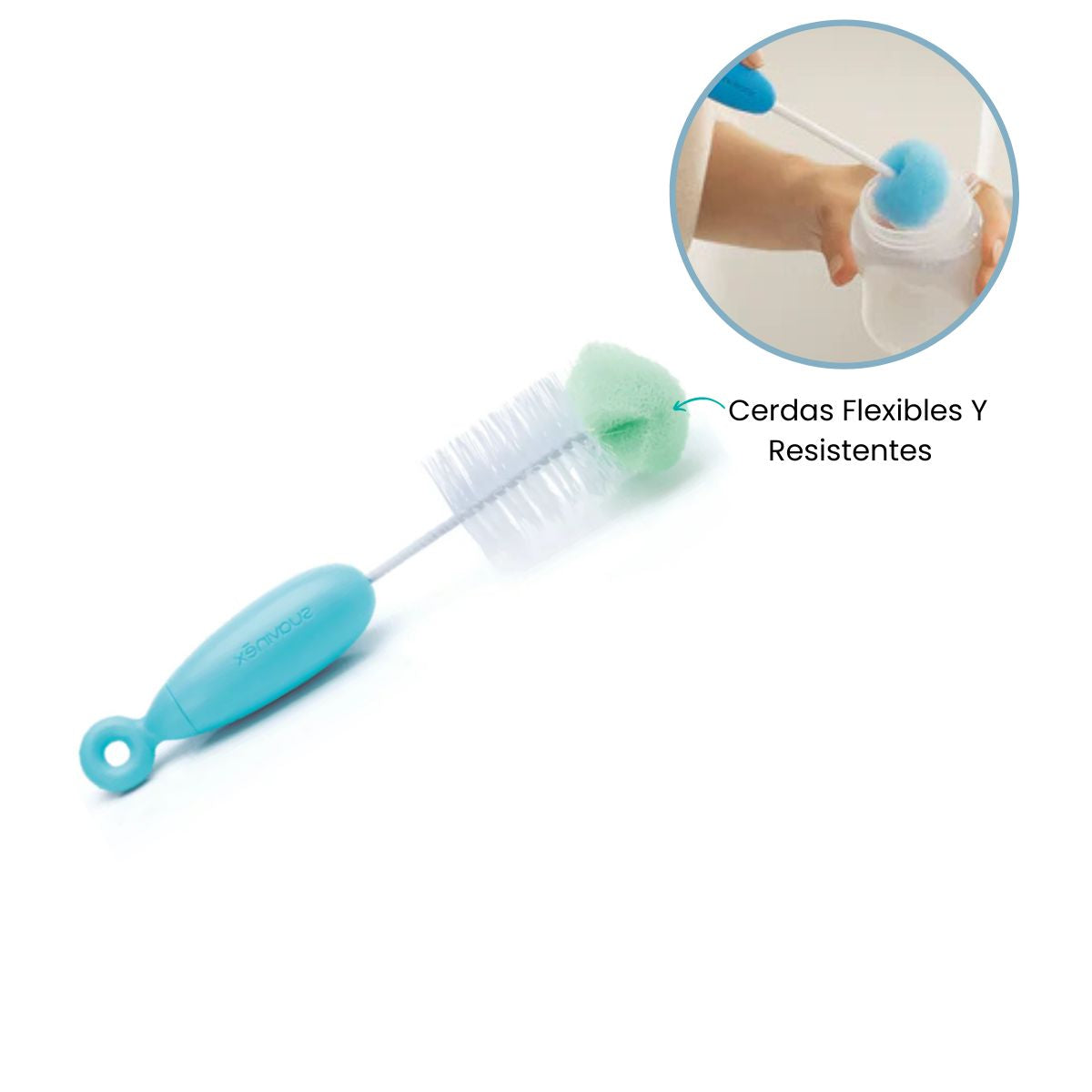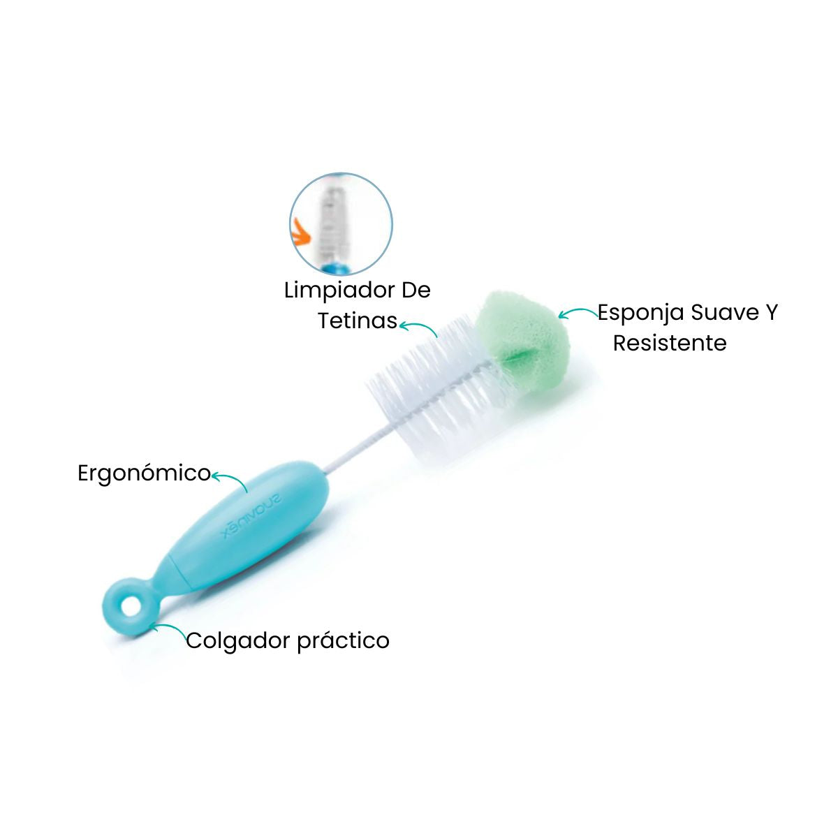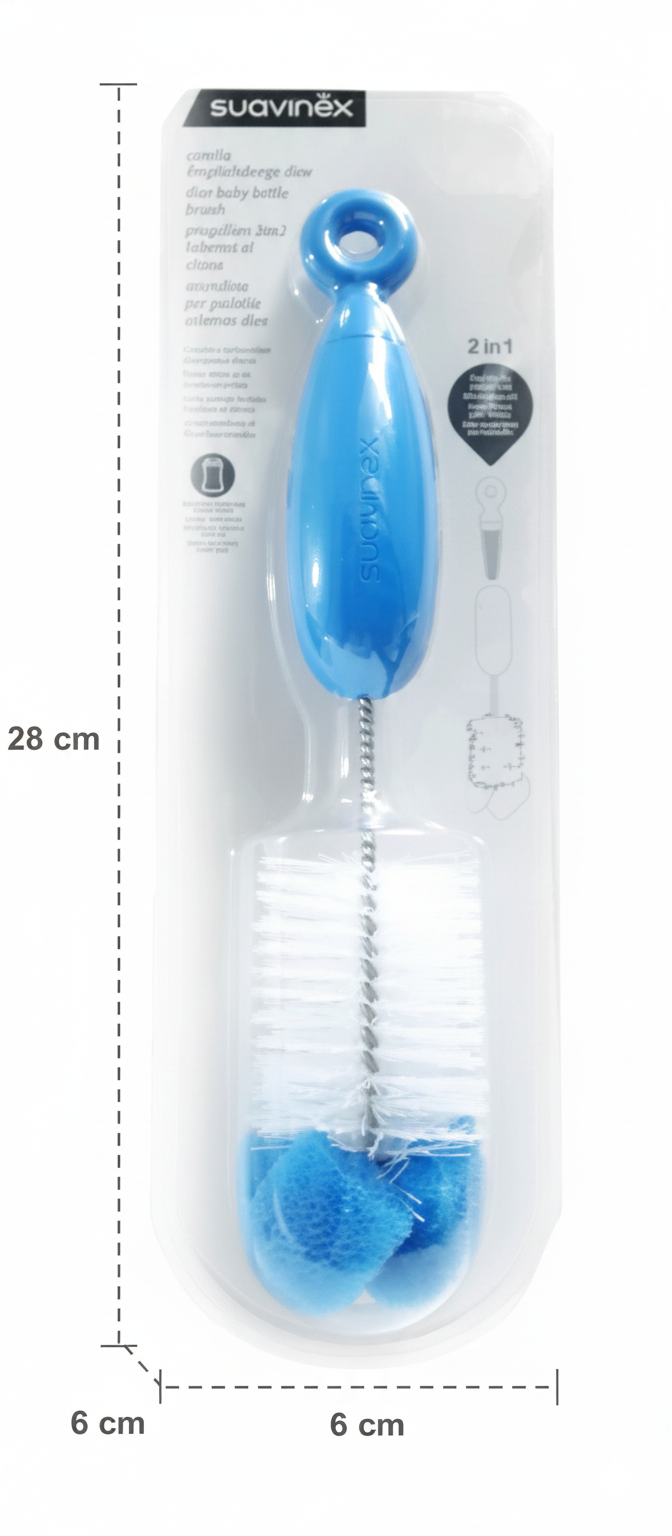 Descubre la eficacia del Cepillo Limpia Biberón Duo de Suavinex, diseñado para hacer más sencilla la limpieza diaria. Su forma ergonómica se adapta cómodamente a tu mano, permitiendo llegar a cada rincón del biberón y del chupón sin esfuerzo. Las cerdas resistentes y flexibles garantizan una limpieza profunda sin dañar las superficies delicadas. Ideal para mantener los objetos esenciales de tu bebé siempre impecables y seguros, acompañándote en cada rutina de higiene.