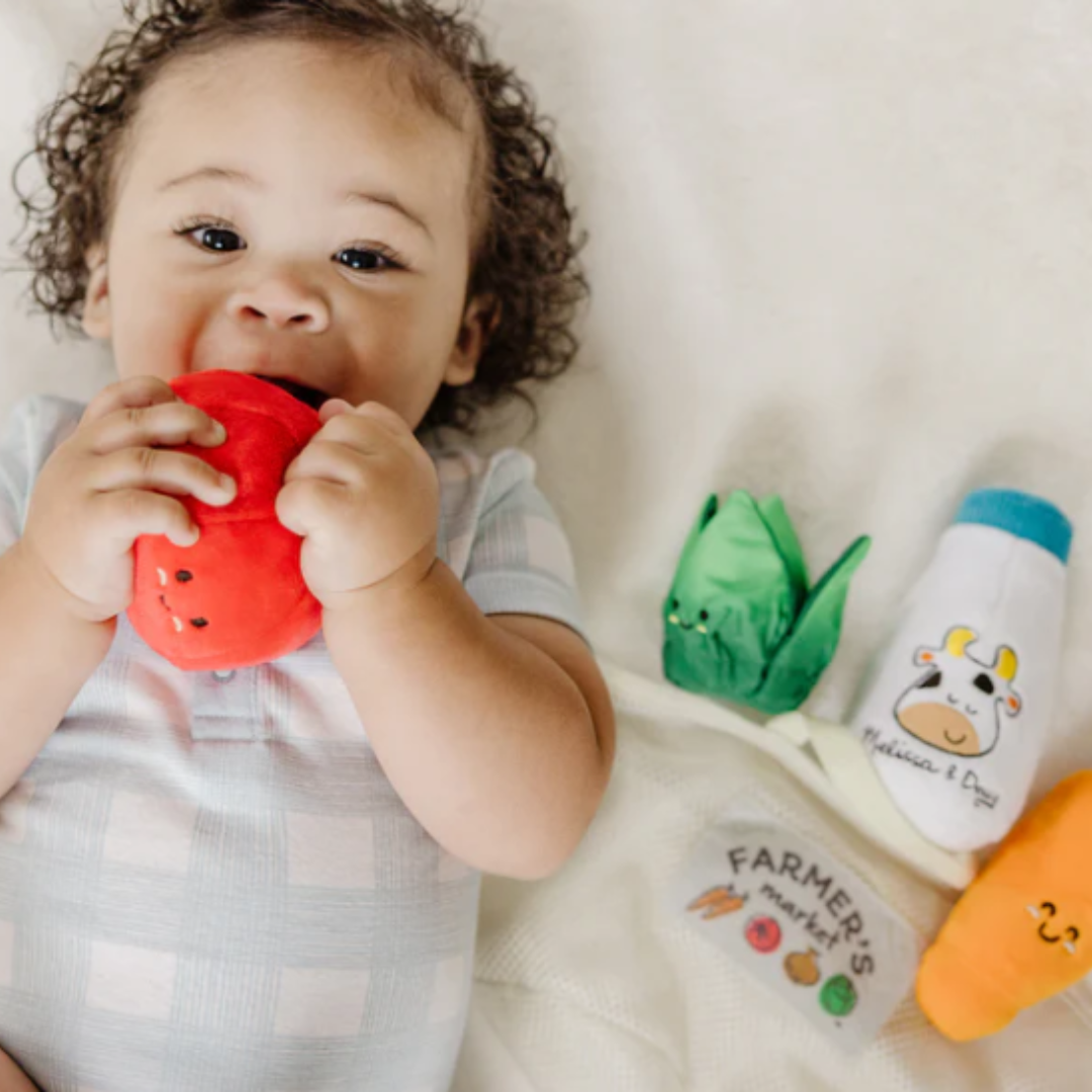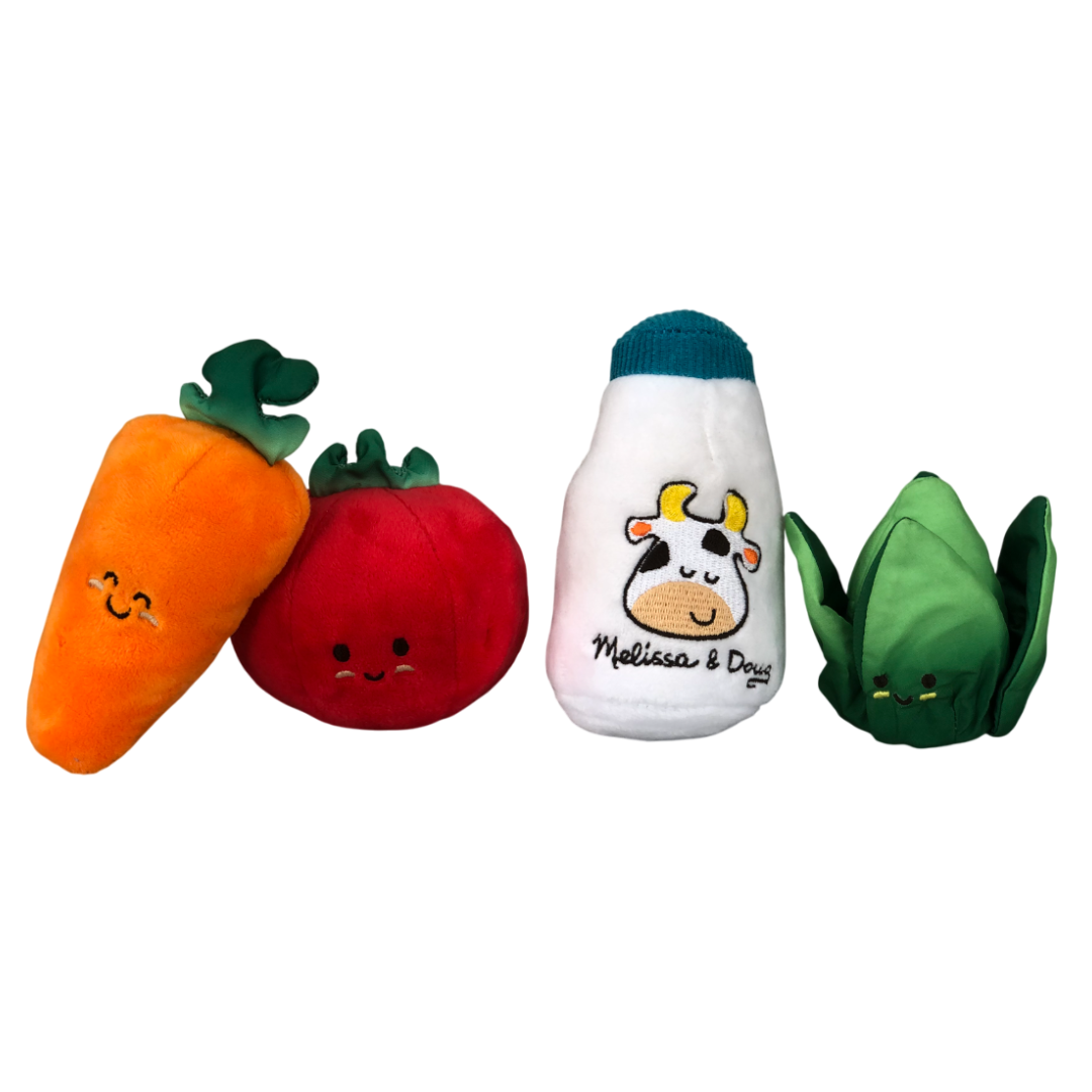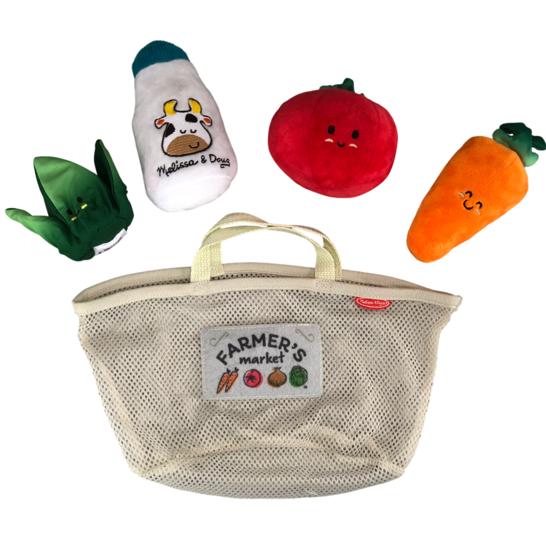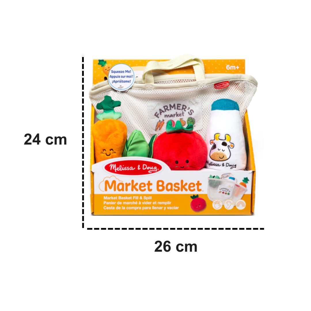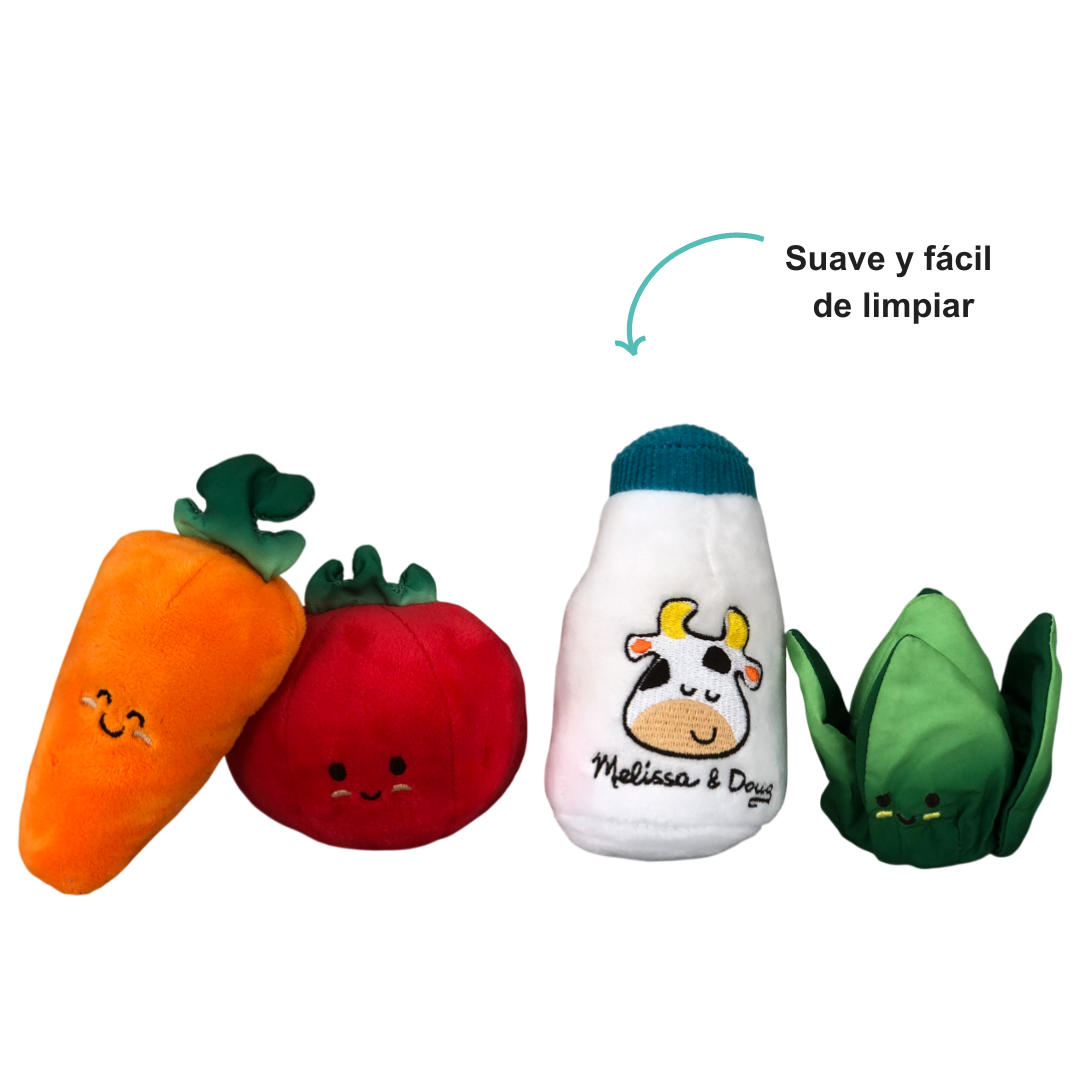 Cesta de mercado de 5 piezas de peluche, textura y sonido.