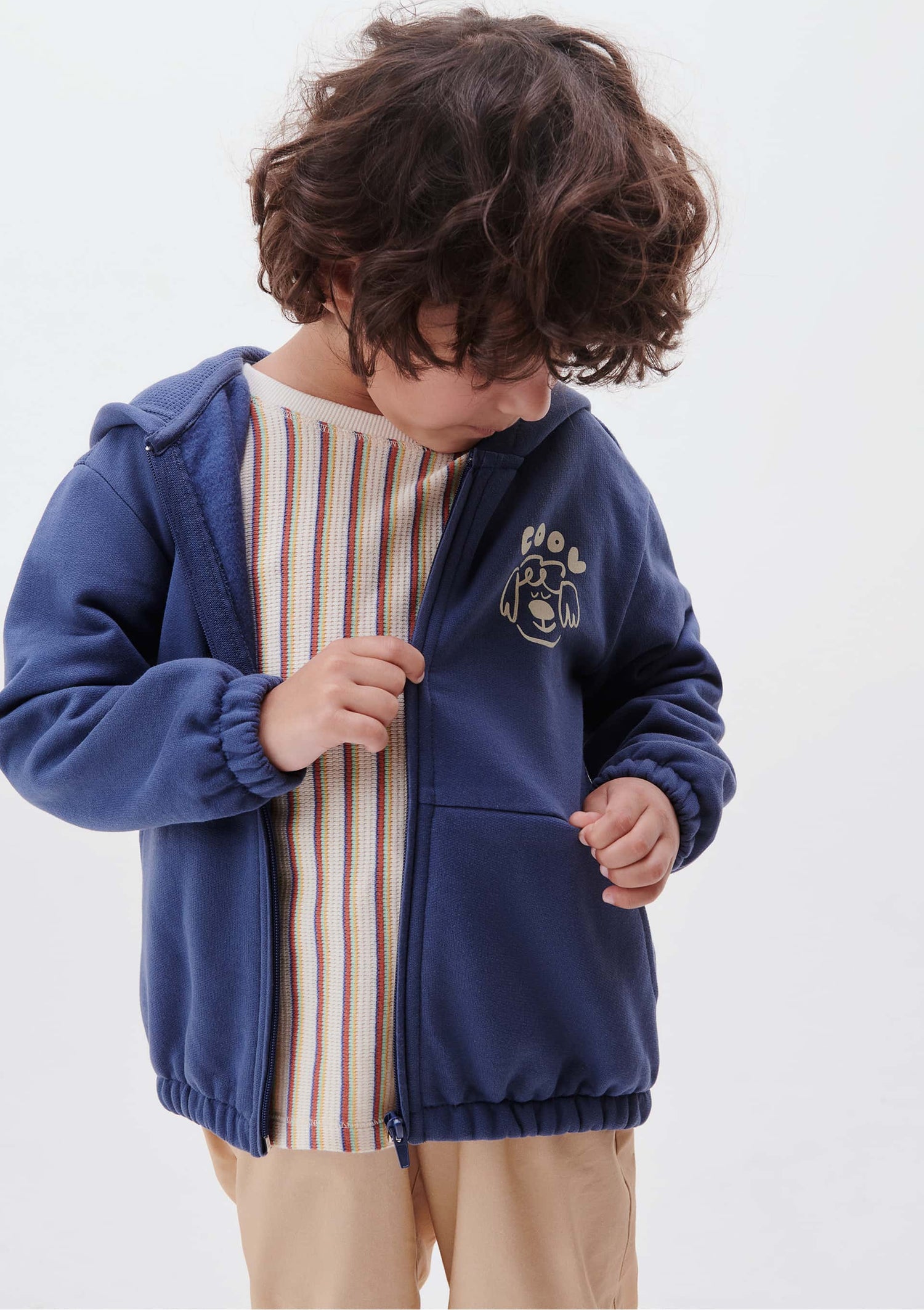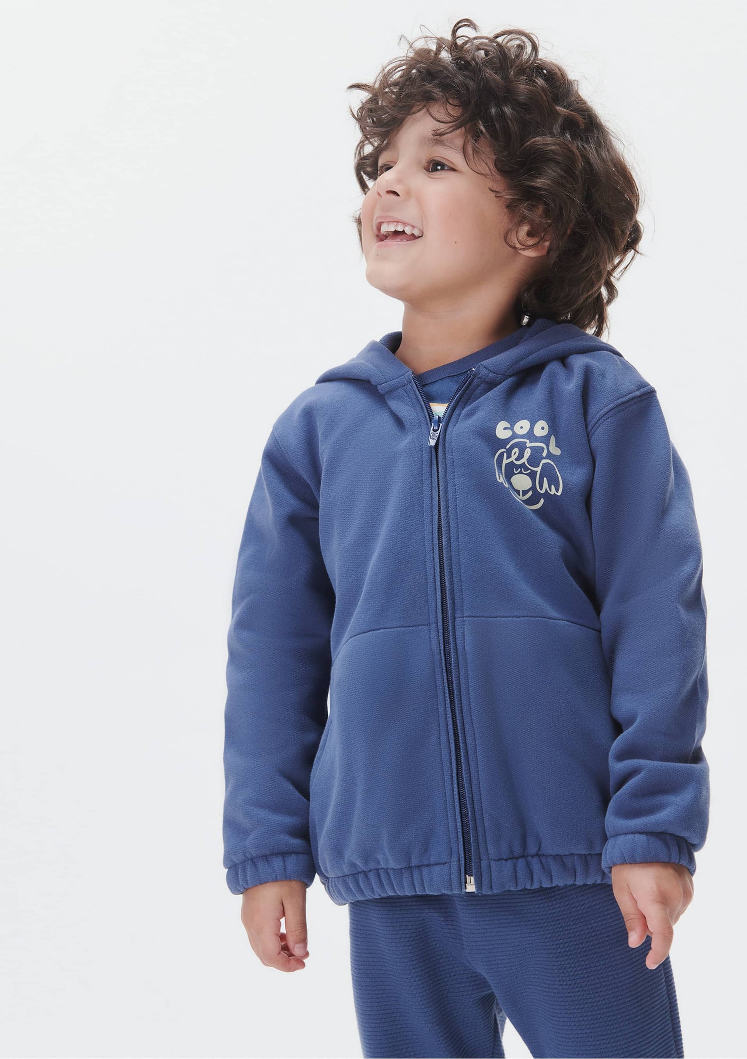 El estampado frontal añade un toque de estilo, mientras que la sudadera de felpa proporciona comodidad y calidez para los más pequeños en los días más fríos.