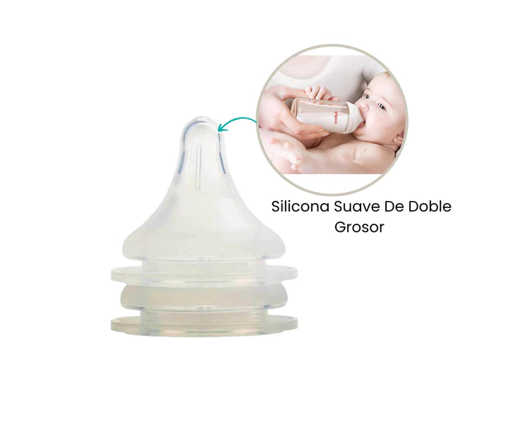 La silicona suave de doble grosor facilita un movimiento natural y suave de la lengua de tu bebé. Además, su diseño con base ancha y punta delgada permite una introducción suave en la boca del bebé, estimulando la función de succión de manera cómoda y efectiva.