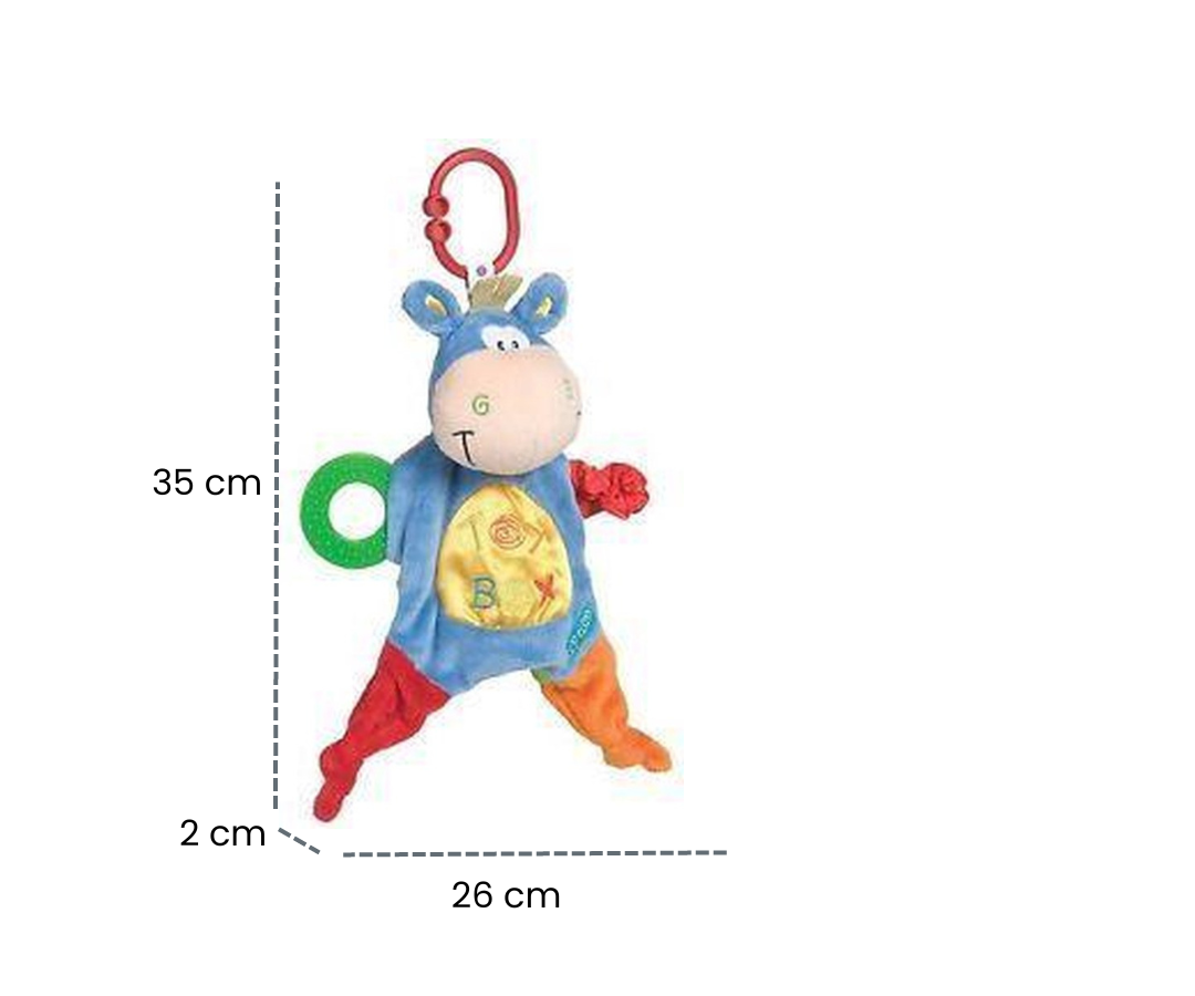 Este lindo peluche de Playgro es irresistible para los más pequeños. Con su divertido diseño de animal de fantasía, este peluche se puede sujetar fácilmente al cochecito o a la cuna mediante el anillo rojo, ofreciendo entretenimiento y estimulación en cualquier lugar. La cobija de estimulación es más que un peluche, es un compañero tierno que cautiva y acompaña a tu bebé en sus momentos de juego y descanso.