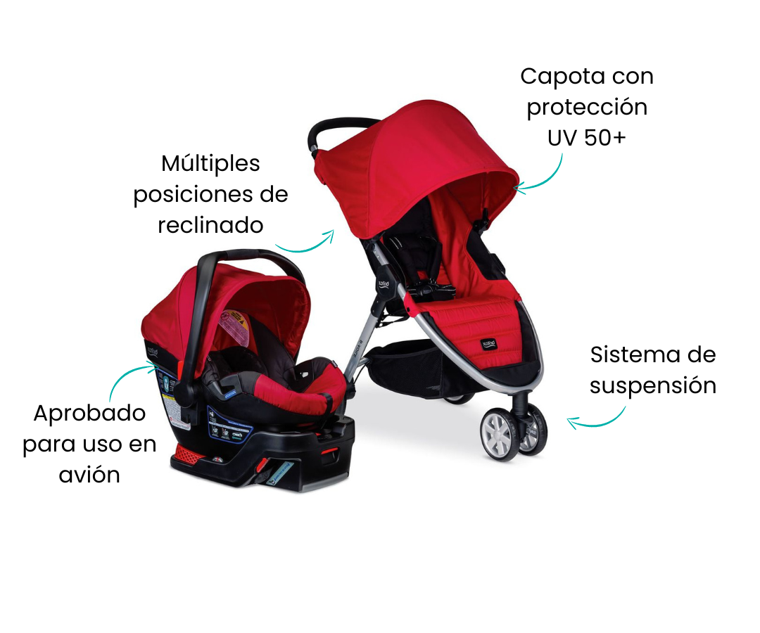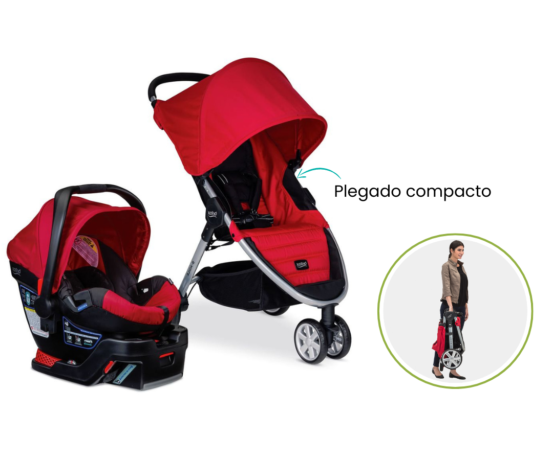 El cochecito es liviano y se pliega rápidamente con una sola mano y es fácil de maniobrar. El asiento para el automóvil cuenta con una carcasa profunda que ocupa menos espacio en su vehículo y minimiza el movimiento de lado a lado para maximizar la protección.