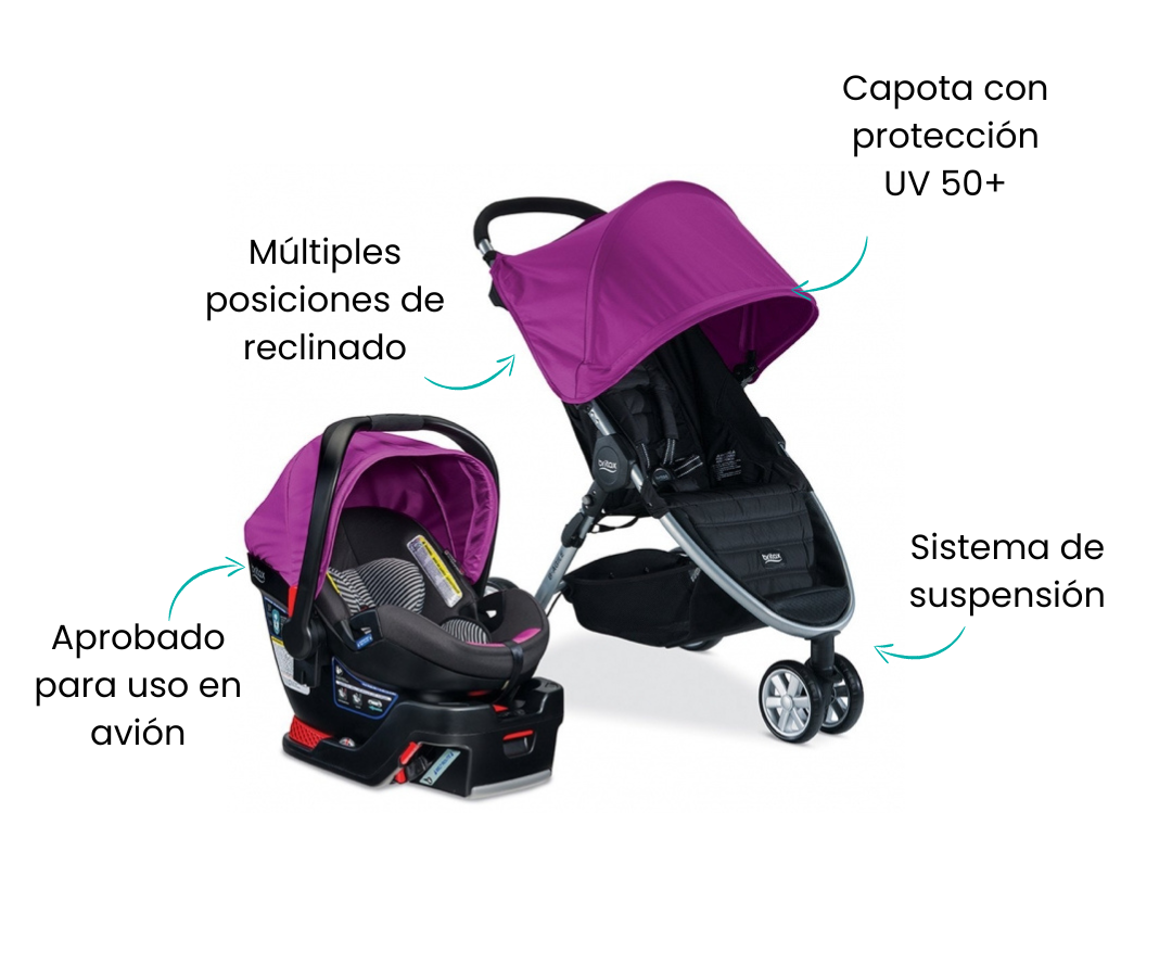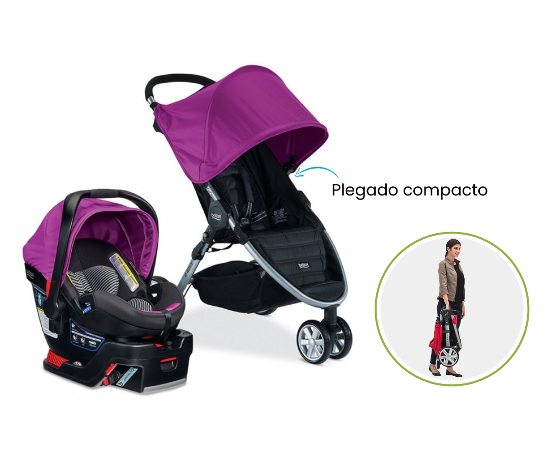 El cochecito es liviano y se pliega rápidamente con una sola mano y es fácil de maniobrar. El asiento para el automóvil cuenta con una carcasa profunda que ocupa menos espacio en su vehículo y minimiza el movimiento de lado a lado para maximizar la protección.
