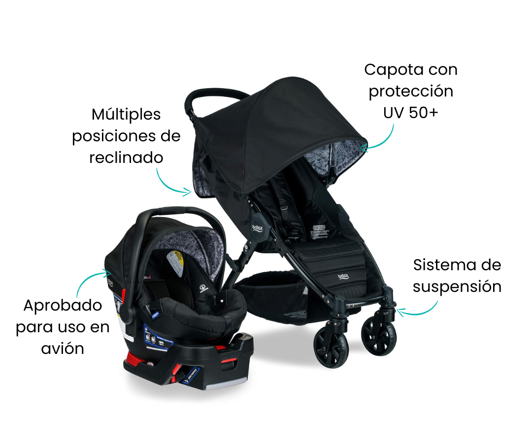 El diseño de cuatro ruedas y la suspensión en todas las ruedas le dan al bebé un paseo suave y estable. Un bolsillo de almacenamiento con cremallera y una cesta extragrande hacen que sea fácil llevar todo lo que necesitas. La base del asiento de coche infantil B-Safe 35 está incluida.