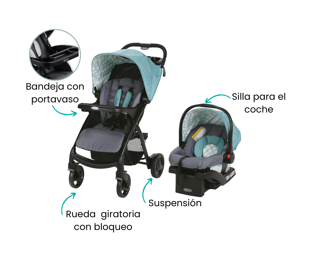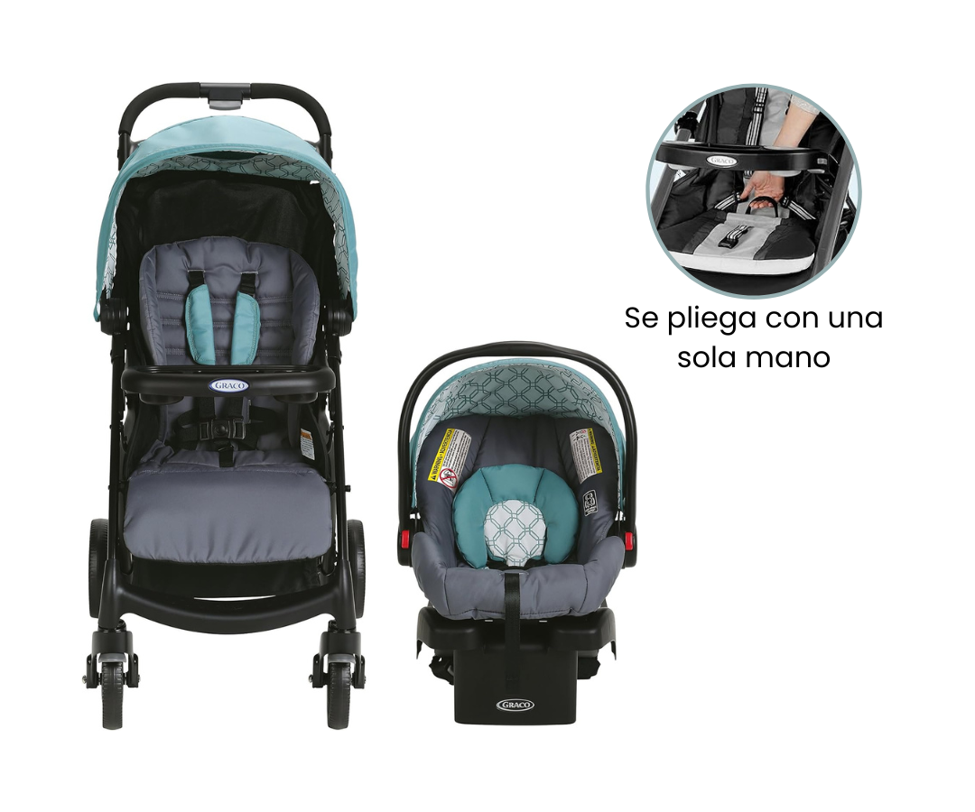 Este sistema de viaje incluye un SnugRide Click Connect de primera categoría (para bebés de 4 a 30 libras), que se conecta al coche. Incluye portabebé con base para mayor seguridad y fácil instalación en tu vehículo.