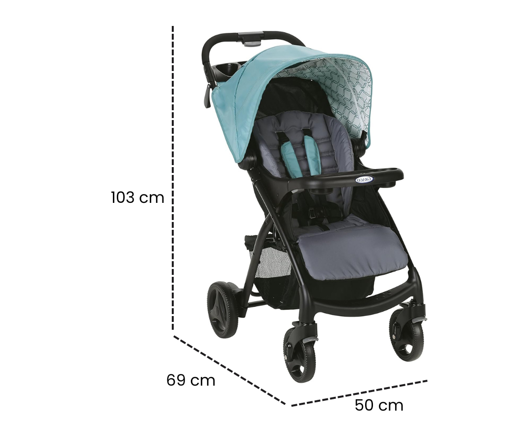 Hay muchas características convenientes para que tú y tu bebé estén felices, incluida la bandeja para padres e hijos con portavasos y una canasta grande. Apreciará el plegado independiente con una sola mano y la correa de transporte incluida que simplifica el transporte.
