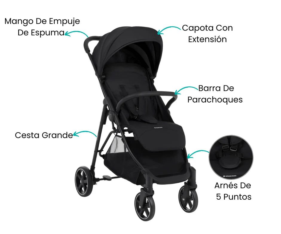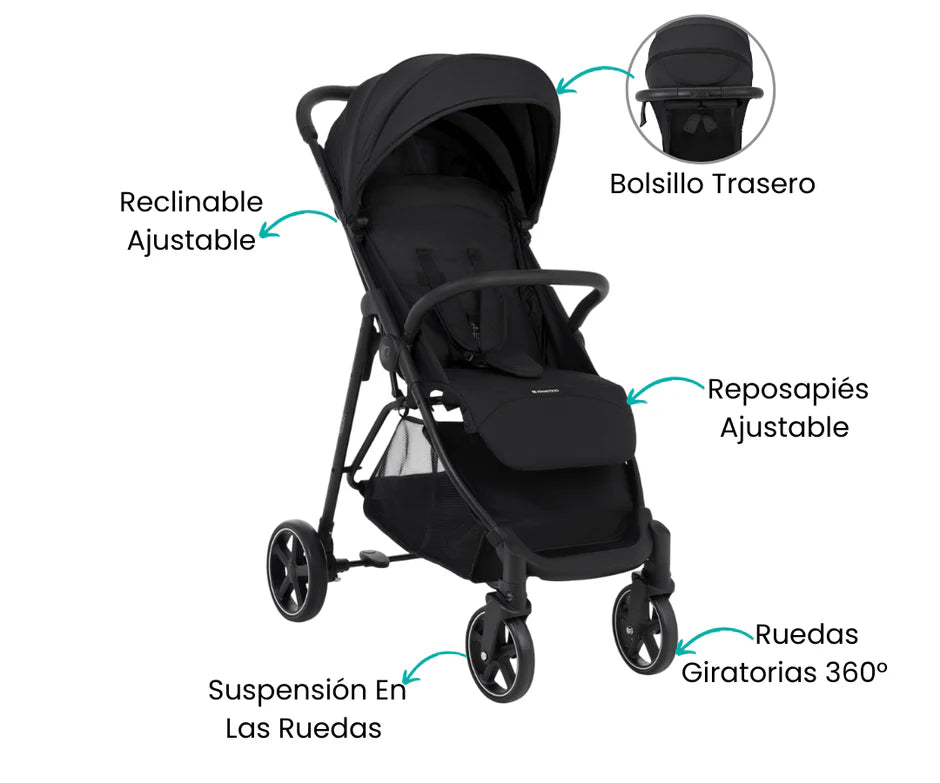 Salir con tu bebé será una experiencia práctica y placentera desde el primer día. Este cochecito acompaña a tu pequeño hasta los 22 kg con un diseño liviano y plegado compacto que cabe en cualquier espacio. Su maniobrabilidad suave lo hace perfecto para la ciudad, combinando estilo y funcionalidad en cada paseo. Con el Alexa Black, cada salida se transforma en un momento de conexión y comodidadl.