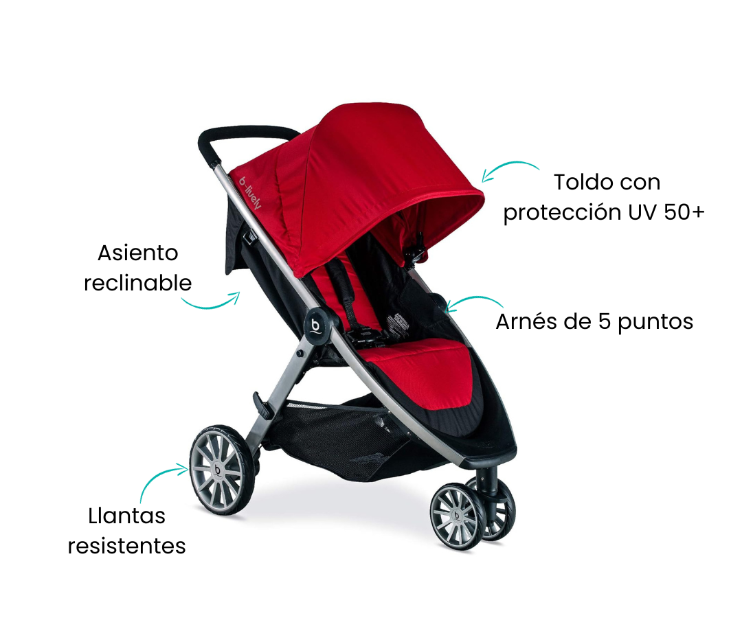 Con un sistema de suspensión en todas las ruedas para un fácil paseo diario, el cochecito B Lively no te pesará gracias a su marco ligero. Diseñado pensando en los padres multitarea, la configuración de 3 ruedas para una maniobrabilidad suave y el plegado rápido con una mano hacen que este cochecito Britax sea fácil de navegar y transportar. El gran toldo UV 50+ con ventana de ventilación transpirable proporciona protección para tu hijo en días soleados o lluviosos, y tiene un gran bolsillo con cremallera en la parte posterior, mientras que la ventana de peek a boo te permite ver a tu pequeño sin interrumpir su siesta.