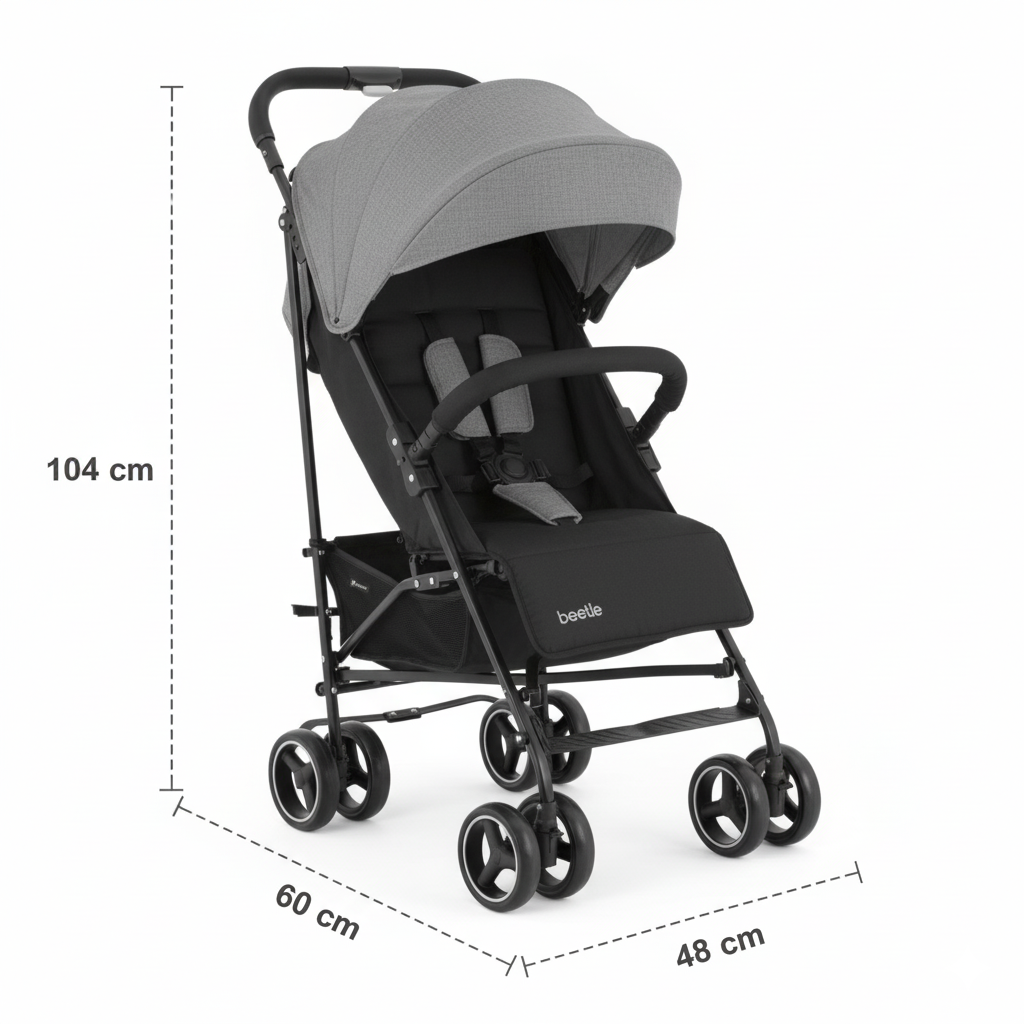 El cochecito BEETLE es la opción ideal para familias que buscan practicidad y comodidad sin comprometer la seguridad. Con un diseño moderno y estructura de acero ligera, se adapta a la rutina diaria de padres activos que disfrutan salir a pasear, hacer compras o recorrer la ciudad con su pequeño siempre cerca.