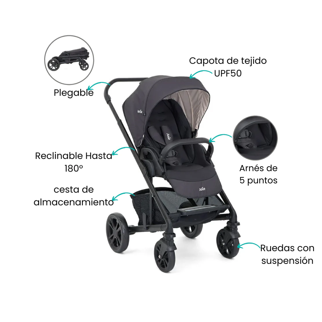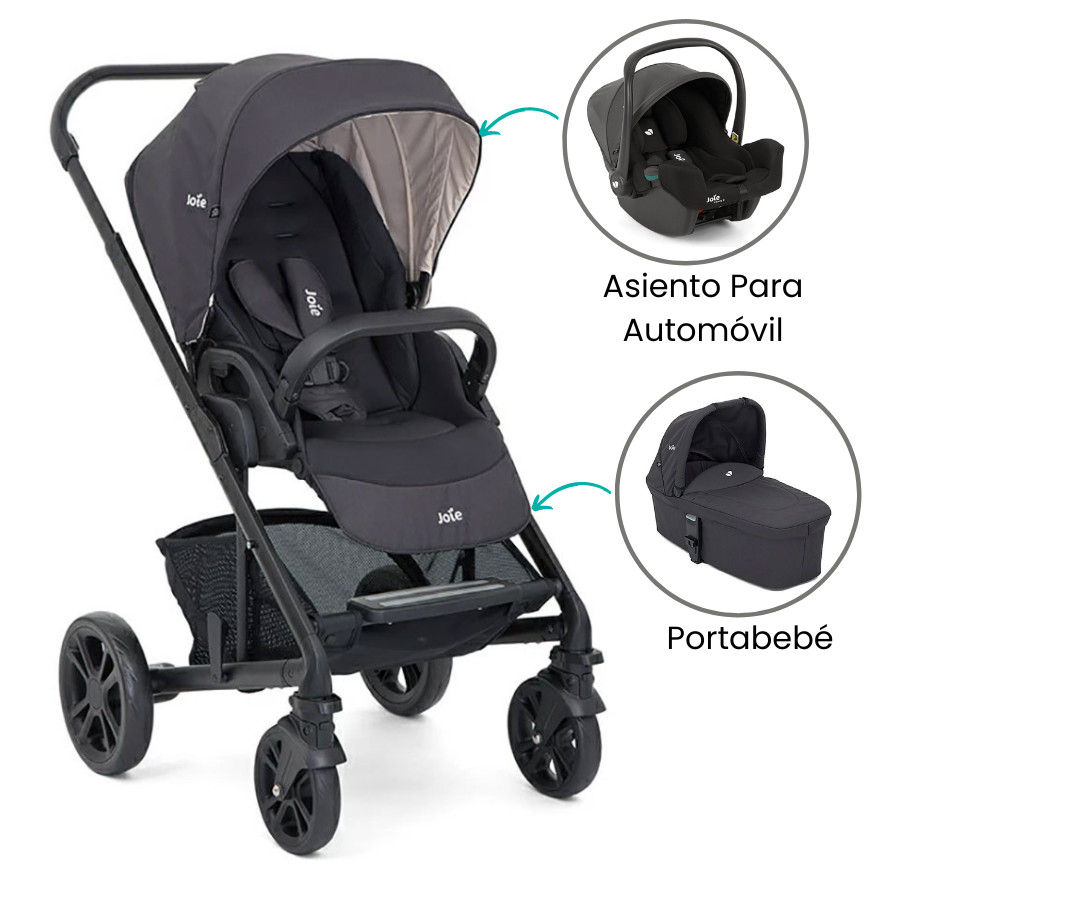 Descubre la versatilidad del coche Chrome Trio de Joie. Su diseño adaptable te ofrece un cochecito clásico, un cómodo portabebé y un asiento para automóvil, todo en uno. Con orientación de asiento ajustable, garantiza la comodidad óptima para tu recién nacido. ¡Prepárate para disfrutar de un sistema de transporte completo que se adapta a todas las etapas de los primeros años de tu bebé!