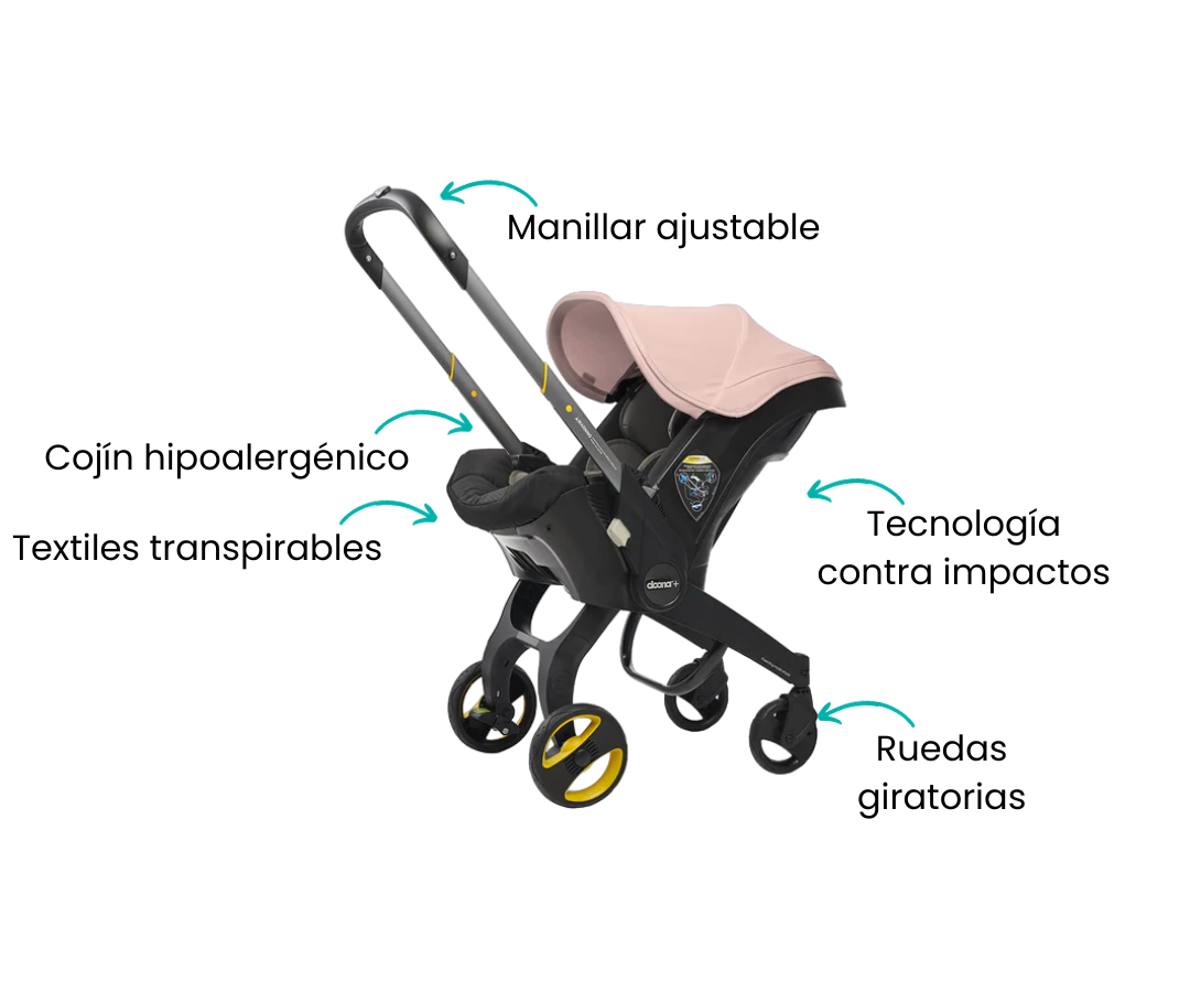Este cochecito de viaje completo y totalmente integrado, permite pasar del asiento para el automóvil al cochecito en segundos. Además puede navegar por las calles cómodamente, sin molestar a tu bebé mientras duerme cuando se sube al automóvil, viaja en autobús o sube las escaleras, brindando una solución segura y práctica para los padres en movimiento.
