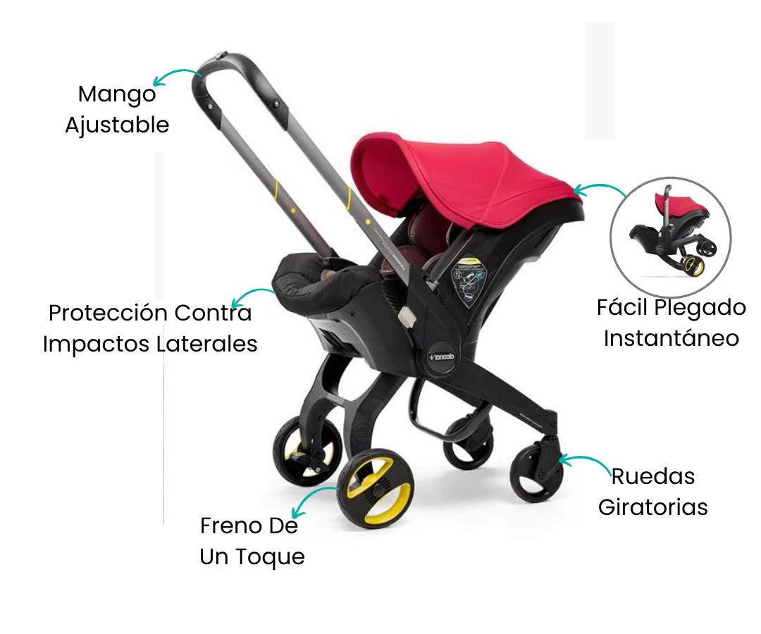 La combinación de silla de auto y cochecito para bebés de Doona fue diseñada para brindar a los padres una solución segura y práctica para su bebé, tanto dentro como fuera del automóvil. Es el primer asiento de automóvil para bebés y cochecito del mundo en uno, que proporciona un sistema de viaje completo y totalmente integrado, lo que le permite pasar del asiento del automóvil al cochecito en segundos.