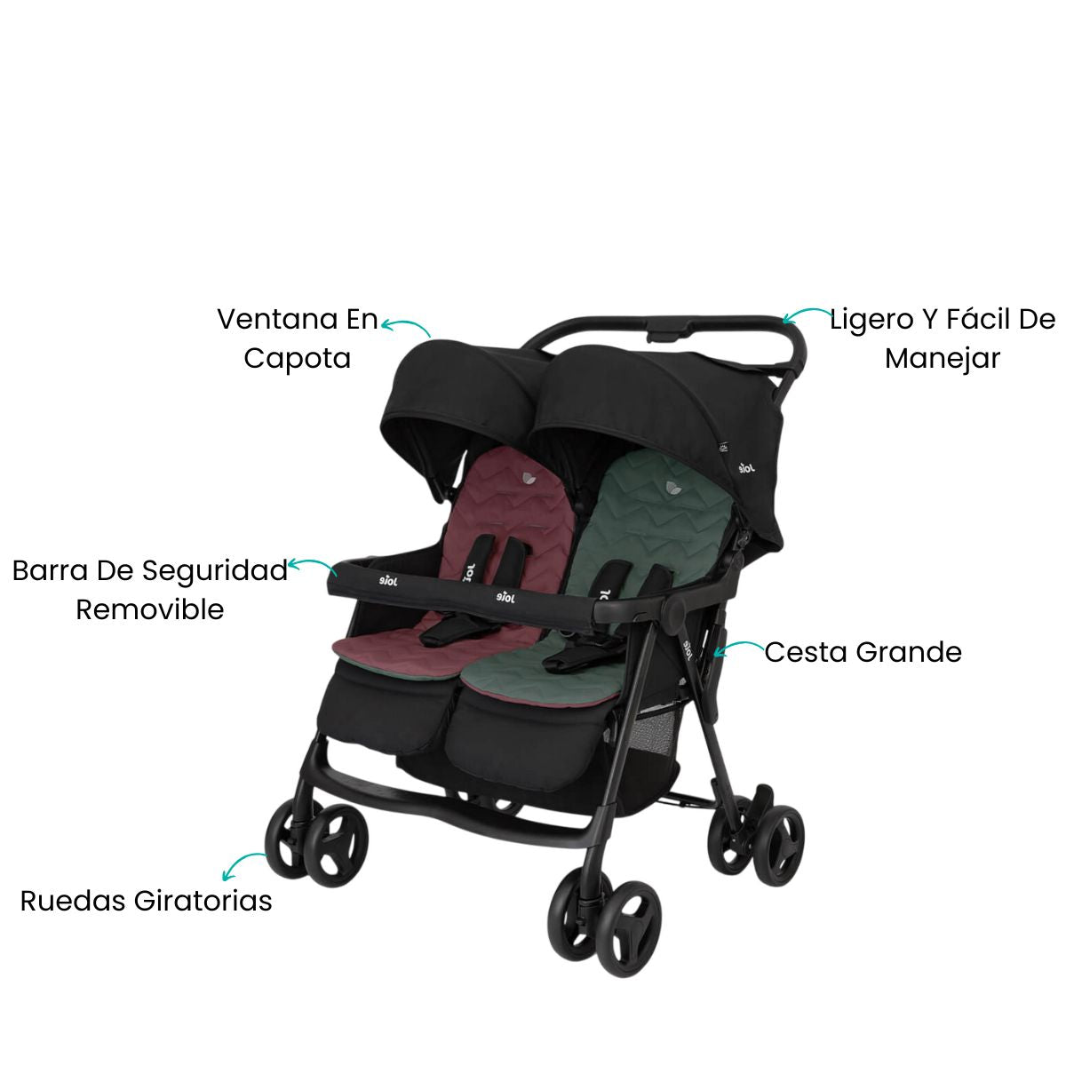 El cochecito doble Joie está diseñado para brindar comodidad, seguridad y estilo a las familias que crecen. Sus asientos orientados hacia adelante se ajustan de forma independiente, permitiendo que cada niño disfrute del paseo a su propio ritmo. Ideal desde el nacimiento gracias a su reclinación total, este coche ofrece una experiencia ergonómica y relajante para los más pequeños, combinando funcionalidad moderna con un diseño ligero y elegante.