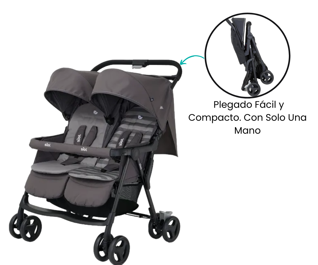 El Joie Aire TwinAire Twin de Joie ofrece la máxima practicidad con su plegado fácil y compacto. Con solo una mano, puedes plegarlo de forma independiente o inclinada, adaptándolo a tus necesidades. Este diseño intuitivo permite un almacenamiento sin esfuerzo y facilita su transporte para que puedas disfrutar de la comodidad en cualquier momento y lugar.