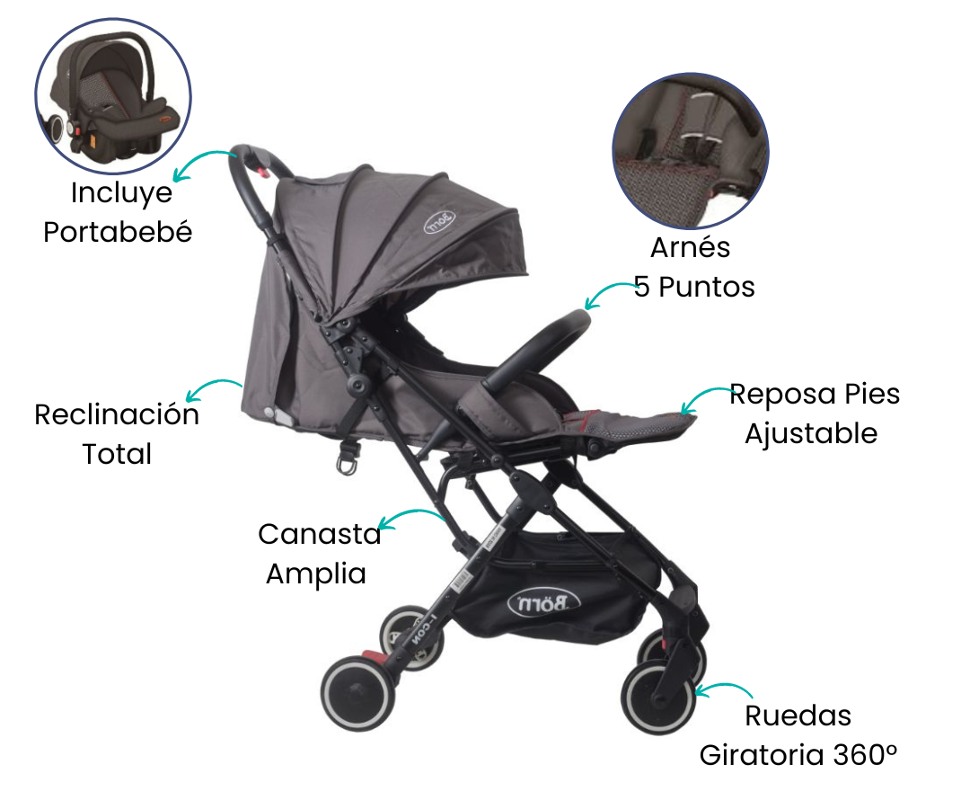 Descubre la versatilidad definitiva con nuestro Coche 4 en 1, diseñado para adaptarse a todas tus necesidades y las de tu pequeño. Gracias a su función 4 en 1, este coche te ofrece la flexibilidad de ajustarlo según tus requerimientos específicos. Desde la posición de recién nacido, ideal para momentos de descanso y sueño, hasta la configuración perfecta para explorar el mundo junto a tu bebé.