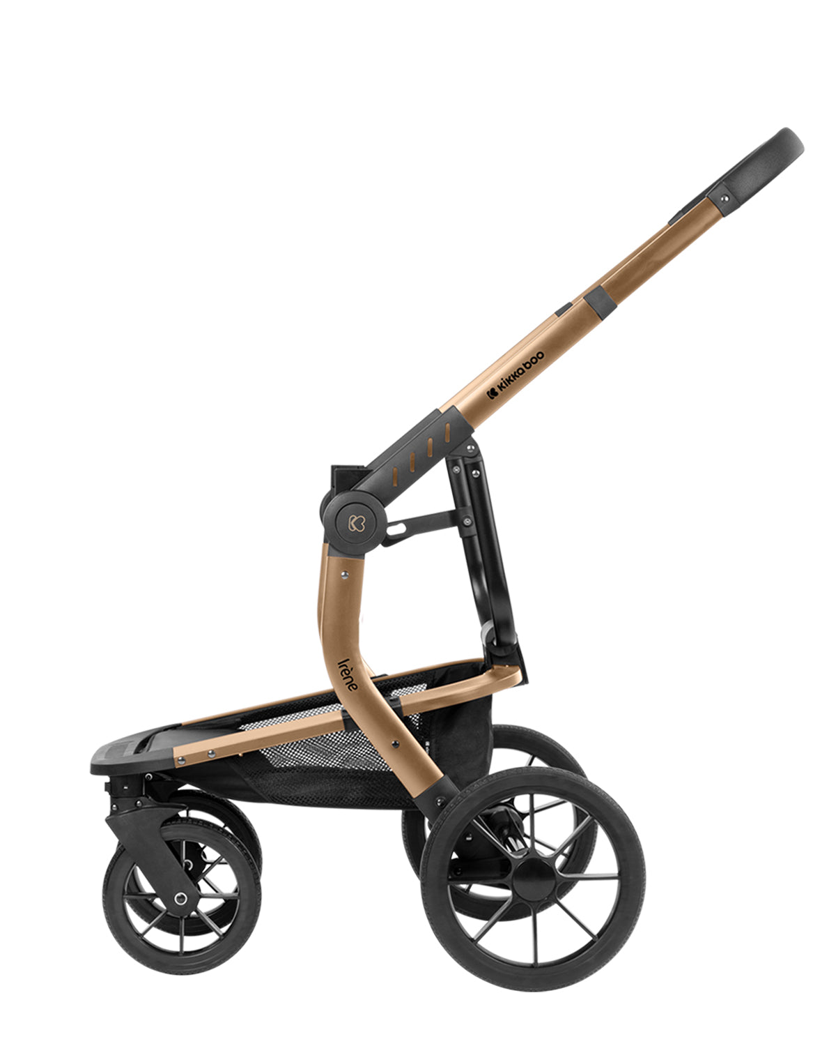 Además, tiene un manubrio de empuje regulable en altura en 4 posiciones, recubierto con cuero ecológico cosido a mano.