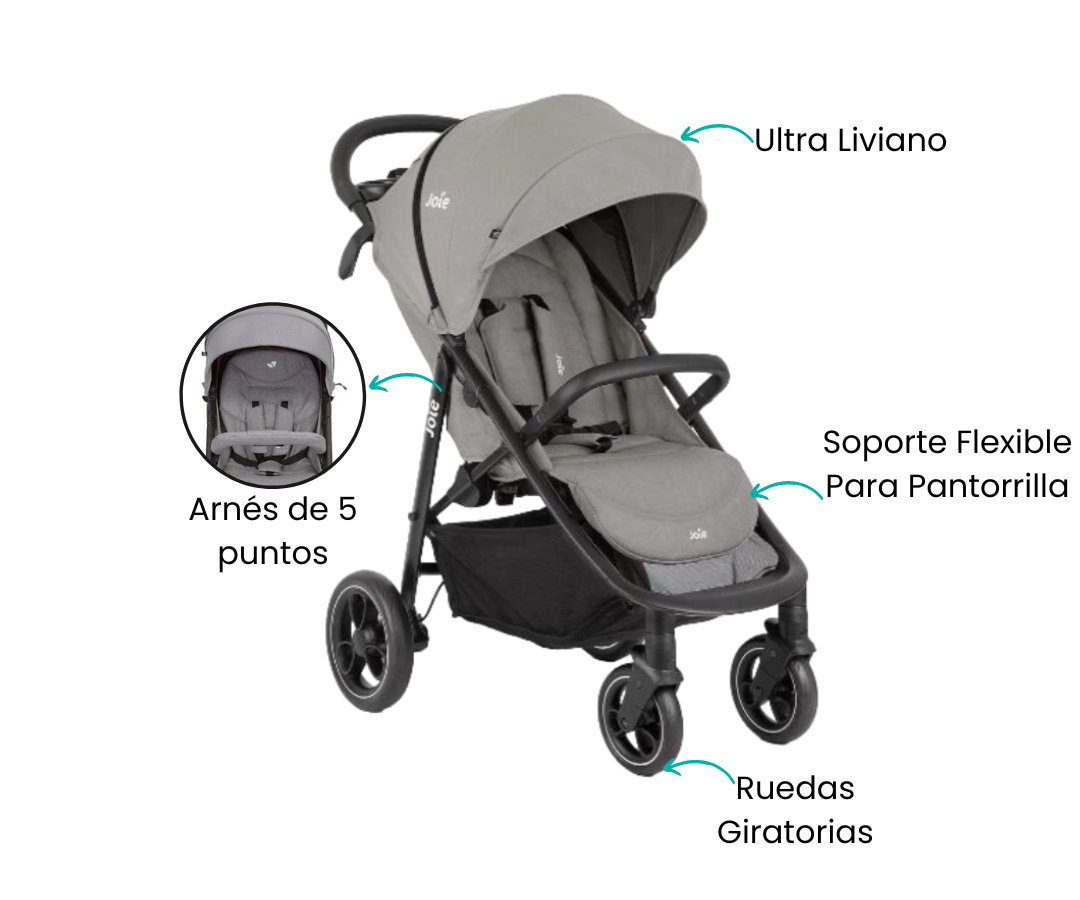 El coche Litetrax Joie es una solución versátil y duradera para padres en movimiento. Diseñado para acompañar a tu bebé desde el nacimiento hasta aproximadamente los 22 kg, ofrece comodidad y conveniencia en cada etapa del crecimiento.
