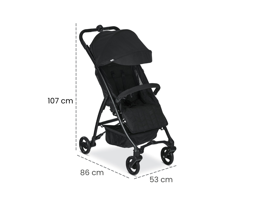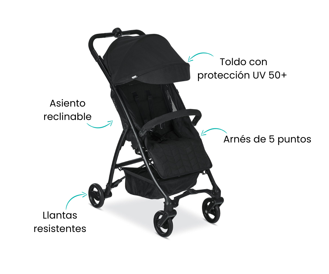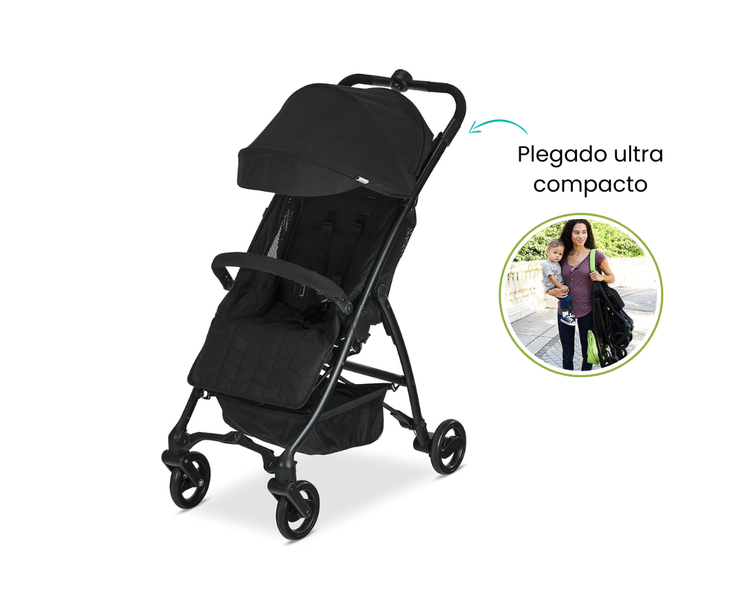 El diseño ligero, el plegado compacto y la correa de transporte manos libres hacen que sea fácil de navegar, transportar y almacenar. El toldo grande proporciona protección adicional para tu hijo en días soleados o lluviosos, mientras que la reclinación casi plana mantiene a tu pequeño cómodo sobre la marcha. Simplemente haga clic en el asiento de coche de su bebé en el cochecito para un sistema de viaje más ligero y conveniente. Antes de salir, guarda todo tu equipo de bebé en la gran cesta de almacenamiento para viajes sin complicaciones.