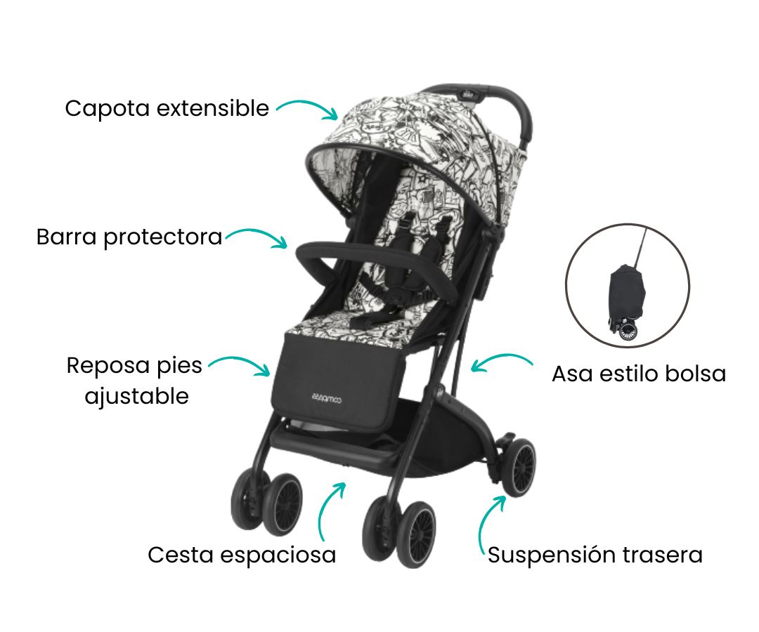 Disfruta de la máxima comodidad en tus paseos gracias al diseño ultraligero de este cochecito, ya sea que optes por plegarlo en modo pocket o llevarlo como mochila. Además puedes protege a tu pequeño del sol y la luz con su capota extensible para brindar una cobertura óptima durante cada paseo.