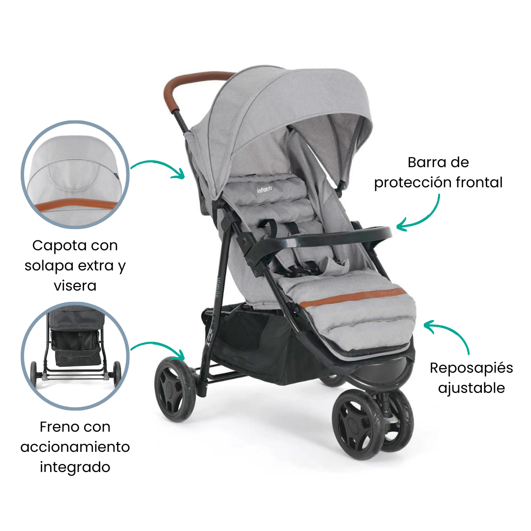 El cochecito Breeze llegó para satisfacer a padres y madres que buscan un cochecito amplio, bonito, cómodo y seguro. Para brindar una mayor comodidad al bebé, el Breeze fue diseñado con un revestimiento acolchado que se extiende por todo el piso, convirtiéndolo en un cochecito suave y muy agradable de usar.